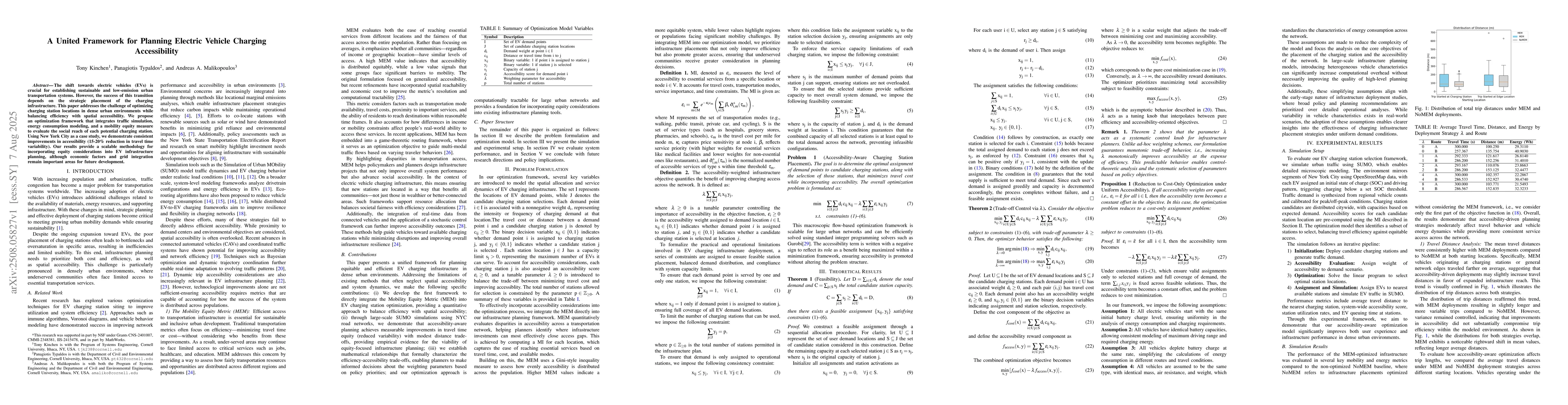The shift towards electric vehicles (EVs) is crucial for establishing sustainable and low-emission urban transportation systems. However, the success of this transition depends on the strategic placement of the charging infrastructure. This paper addresses the challenge of optimizing charging station locations in dense urban environments while balancing efficiency with spatial accessibility. We propose an optimization framework that integrates traffic simulation, energy consumption modeling, and a mobility equity measure to evaluate the social reach of each potential charging station. Using New York City as a case study, we demonstrate consistent improvements in accessibility (15-20% reduction in travel time variability). Our results provide a scalable methodology for incorporating equity considerations into EV infrastructure planning, although economic factors and grid integration remain important areas for future development.
