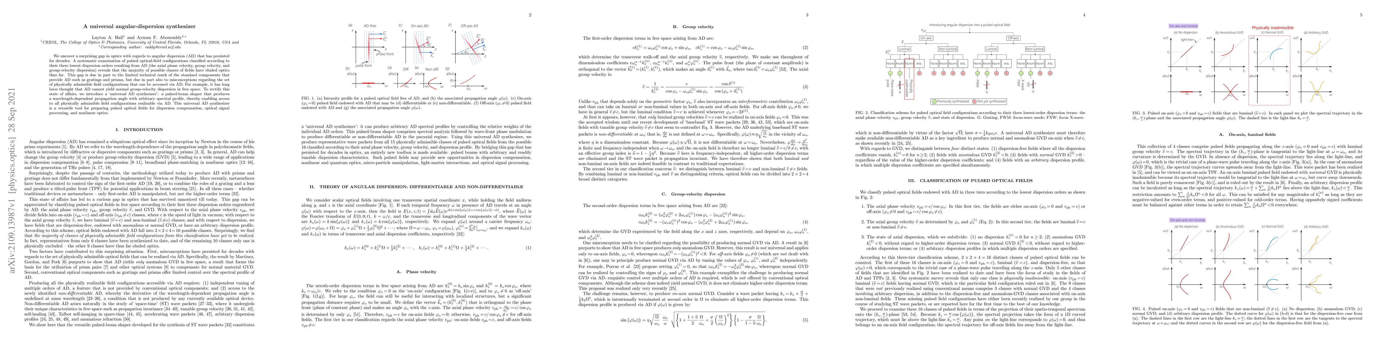 This paper addresses a long-standing gap in optics concerning angular dispersion, introducing a 'universal AD synthesizer' that can generate previously inaccessible optical-field configurations. This tool enables dispersion compensation, signal processing, and nonlinear optics by producing a wavelength-dependent propagation angle with any spectral profile.