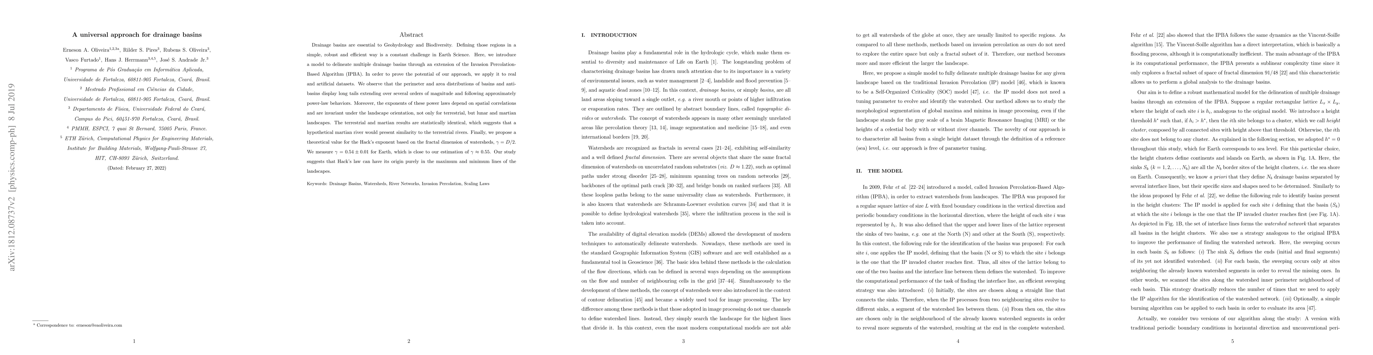 Researchers develop a new method to define drainage basins using Invasion Percolation-Based Algorithm, finding that these regions follow power-law behaviors with exponents related to landscape correlations.