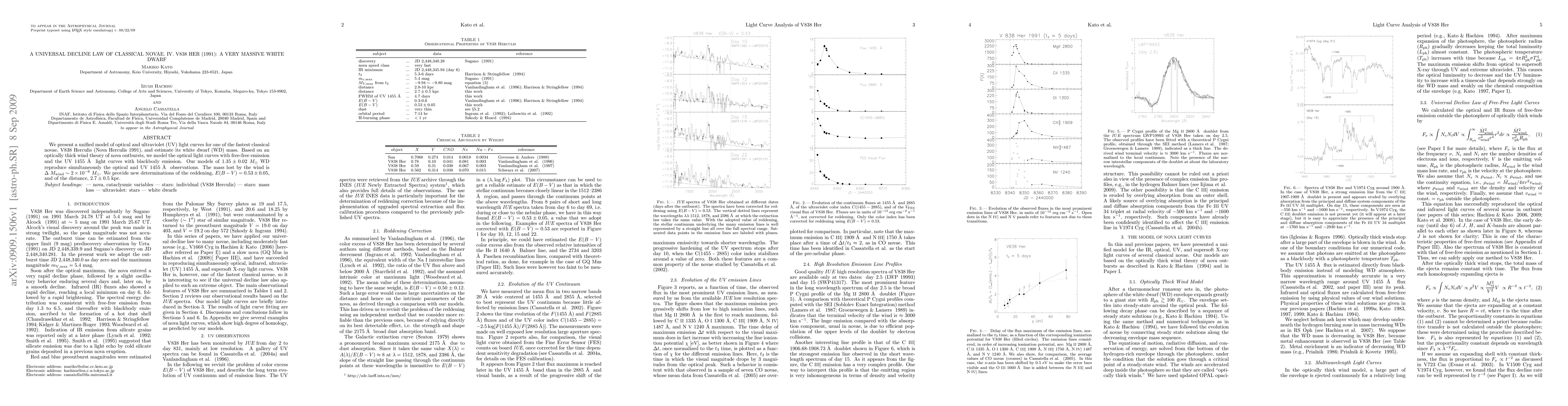 We present a unified model of optical and ultraviolet (UV) light curves for one of the fastest classical novae, V838 Herculis (Nova Herculis 1991), and estimate its white dwarf (WD) mass. Based on an optically thick wind theory of nova outbursts, we model the optical light curves with free-free emission and the UV 1455 \AA light curves with blackbody emission. Our models of 1.35 \pm 0.02 M_\sun WD reproduce simultaneously the optical and UV 1455 \AA observations. The mass lost by the wind is \Delta M_{wind} \sim 2 \times 10^{-6} M_\sun. We provide new determinations of the reddening, E(B-V) = 0.53 \pm 0.05, and of the distance, 2.7 \pm 0.5 kpc.