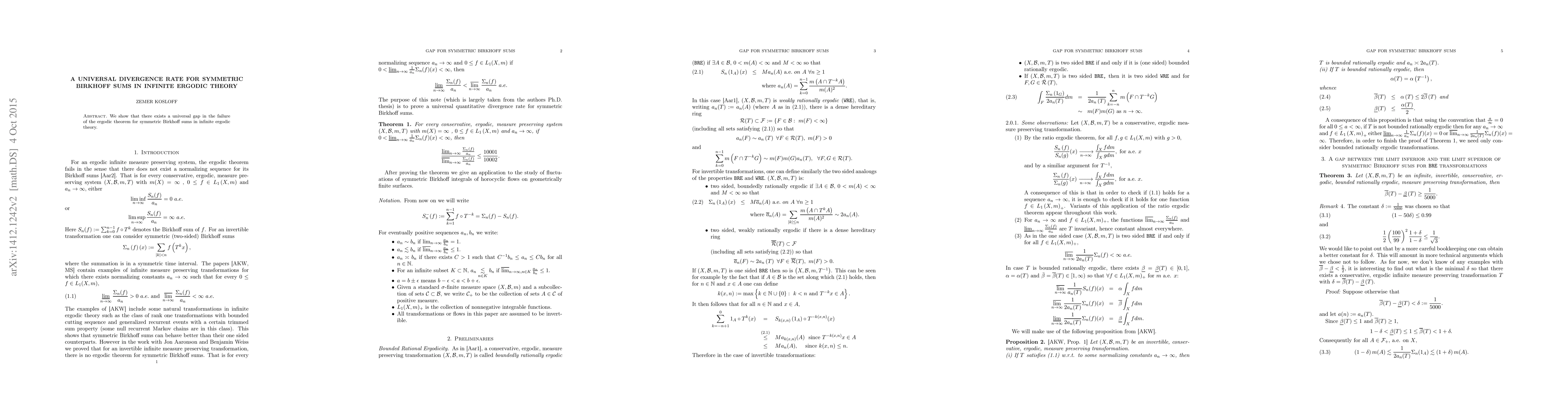 We show that there exists a universal gap in the failure of the ergodic theorem for symmetric Birkhoff sums in infinite ergodic theory. In addition, an application of this result to a question of fluctuations of the Birkhoff integrals of horocyclic flows on geometrically finite surfaces is given.