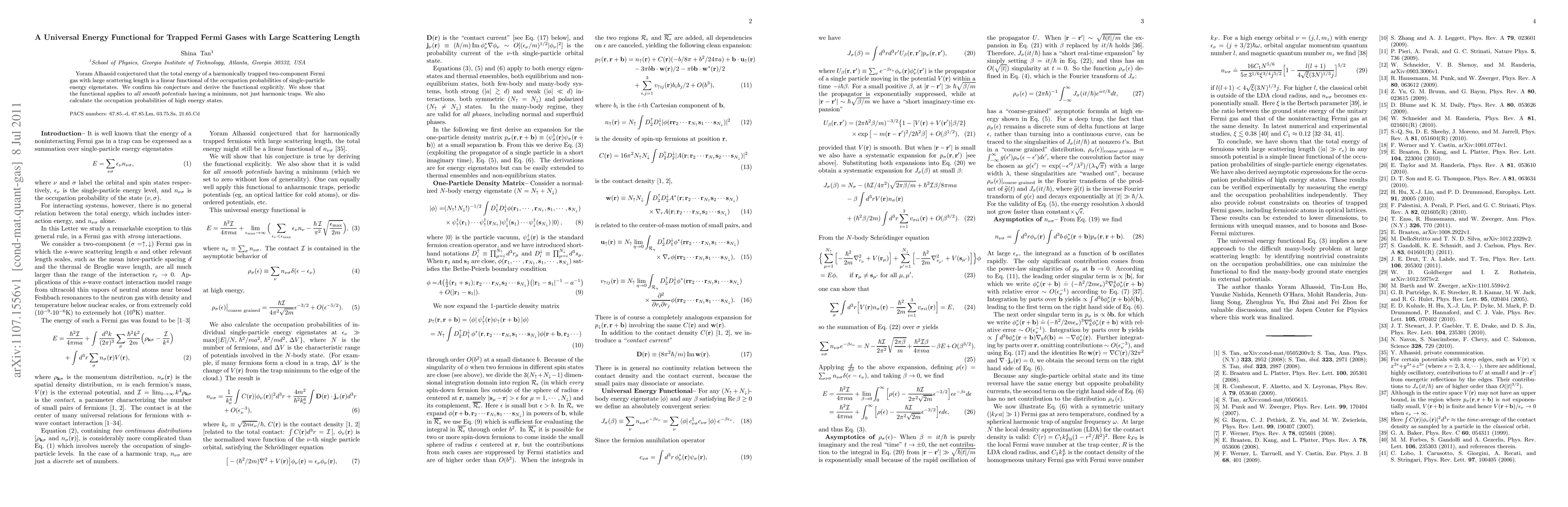 Researchers confirm a universal energy functional for trapped Fermi gases with large scattering length, allowing them to calculate occupation probabilities of high-energy states in any smooth potential.