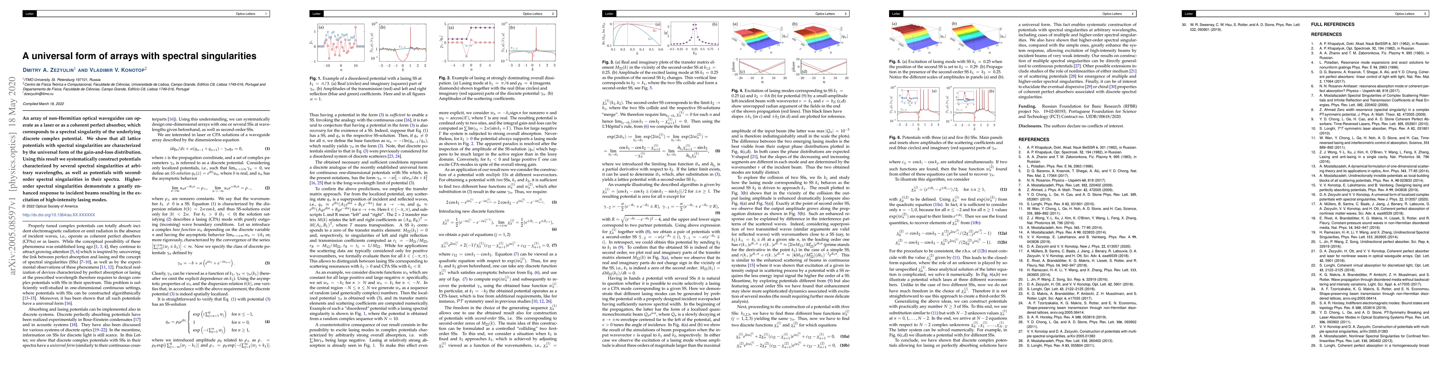 An array of non-Hermitian optical waveguides can operate as a laser or as a coherent perfect absorber, which corresponds to a spectral singularity of the underlying discrete complex potential. We show that all lattice potentials with spectral singularities are characterized by the universal form of the gain-and-loss distribution. Using this result we systematically construct potentials characterized by several spectral singularities at arbitrary wavelengths, as well as potentials with second-order spectral singularities in their spectra. Higher-order spectral singularities demonstrate a greatly enhanced response to incident beams resulting in the excitation of high-intensity lasing modes.