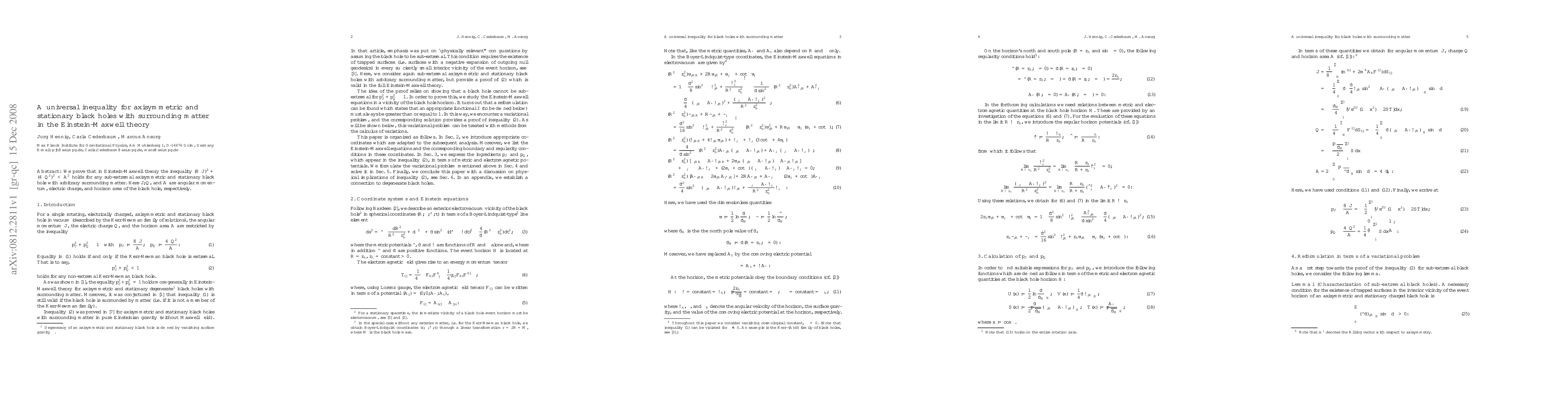 We prove that in Einstein-Maxwell theory the inequality $(8\pi J)^2+(4\pi Q^2)^2 < A^2$ holds for any sub-extremal axisymmetric and stationary black hole with arbitrary surrounding matter. Here $J, Q$, and $A$ are angular momentum, electric charge, and horizon area of the black hole, respectively.