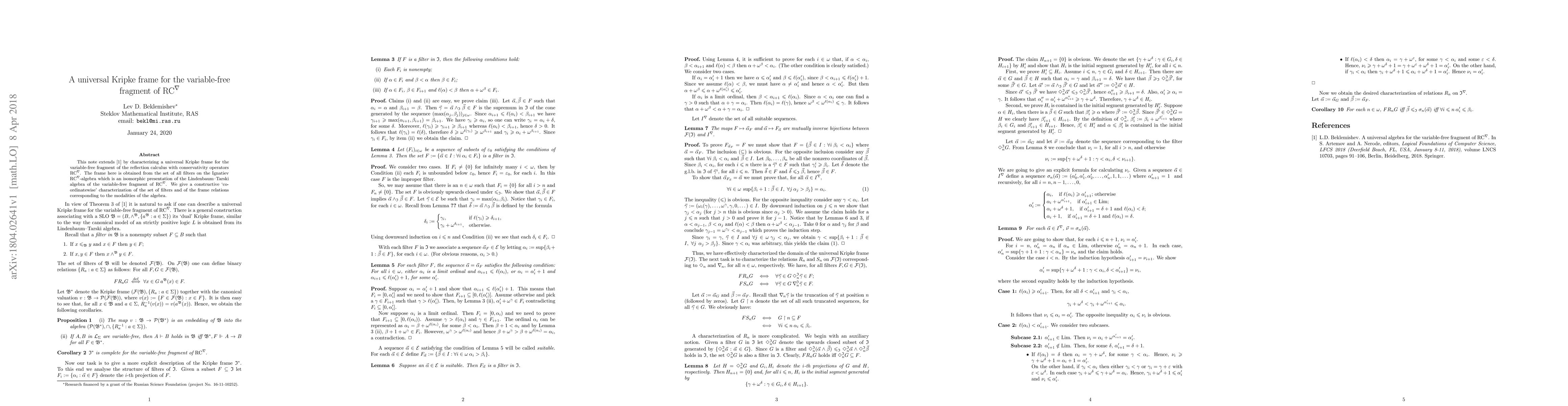 This research paper introduces a universal Kripke frame for the variable-free fragment of RC$^ abla$, a mathematical framework used to describe logical systems, providing a standardized structure for understanding its properties.