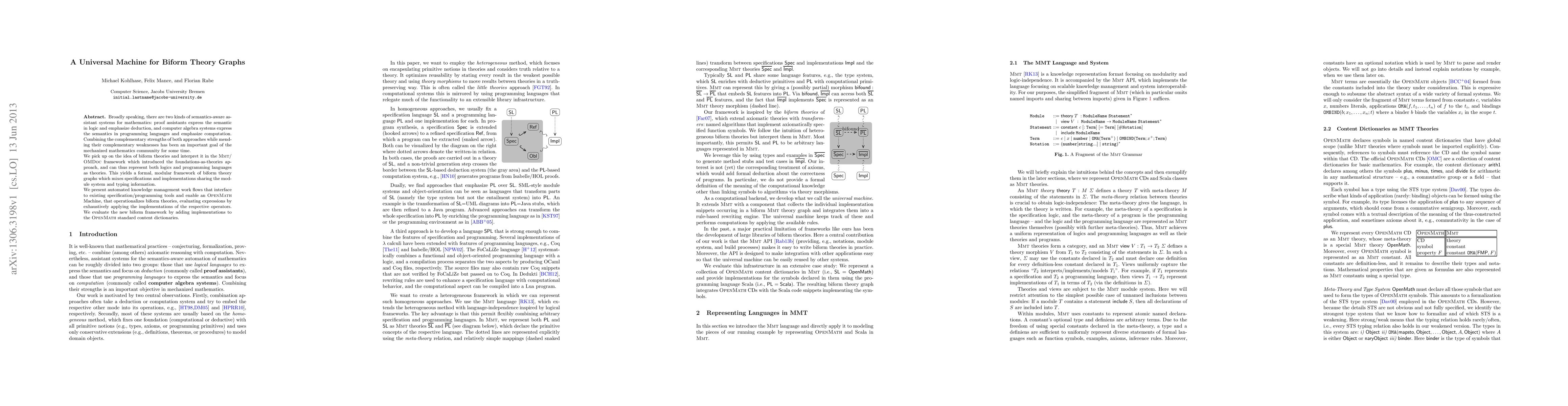 Broadly speaking, there are two kinds of semantics-aware assistant systems for mathematics: proof assistants express the semantic in logic and emphasize deduction, and computer algebra systems express the semantics in programming languages and emphasize computation. Combining the complementary strengths of both approaches while mending their complementary weaknesses has been an important goal of the mechanized mathematics community for some time. We pick up on the idea of biform theories and interpret it in the MMTt/OMDoc framework which introduced the foundations-as-theories approach, and can thus represent both logics and programming languages as theories. This yields a formal, modular framework of biform theory graphs which mixes specifications and implementations sharing the module system and typing information. We present automated knowledge management work flows that interface to existing specification/programming tools and enable an OpenMath Machine, that operationalizes biform theories, evaluating expressions by exhaustively applying the implementations of the respective operators. We evaluate the new biform framework by adding implementations to the OpenMath standard content dictionaries.