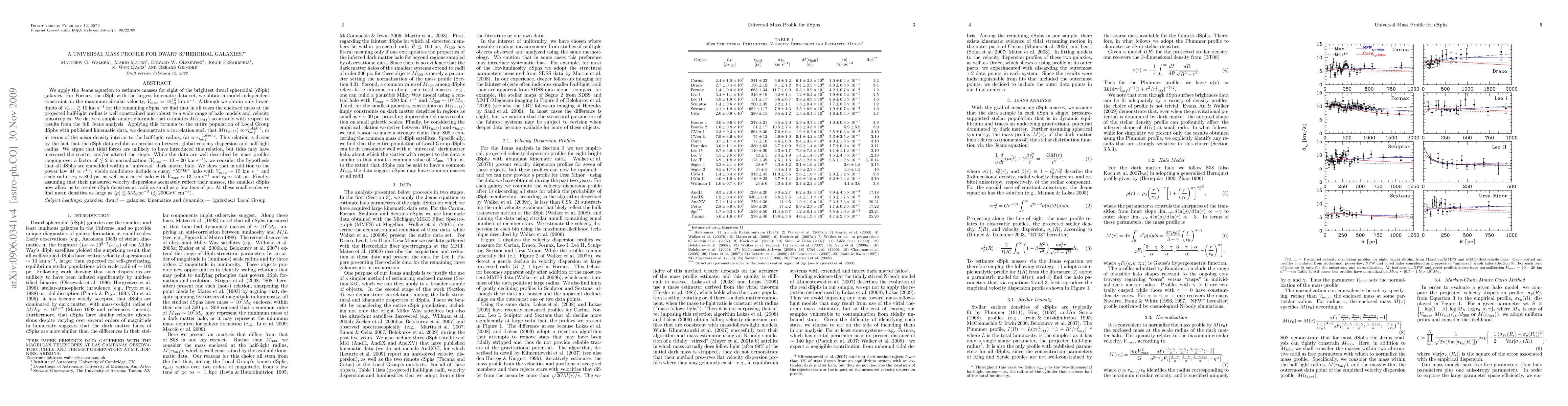 This study estimates a universal mass profile for dwarf spheroidal galaxies, finding a correlation between global velocity dispersion and half-light radius, and suggesting that these galaxies may be embedded within a single, dark matter halo.
