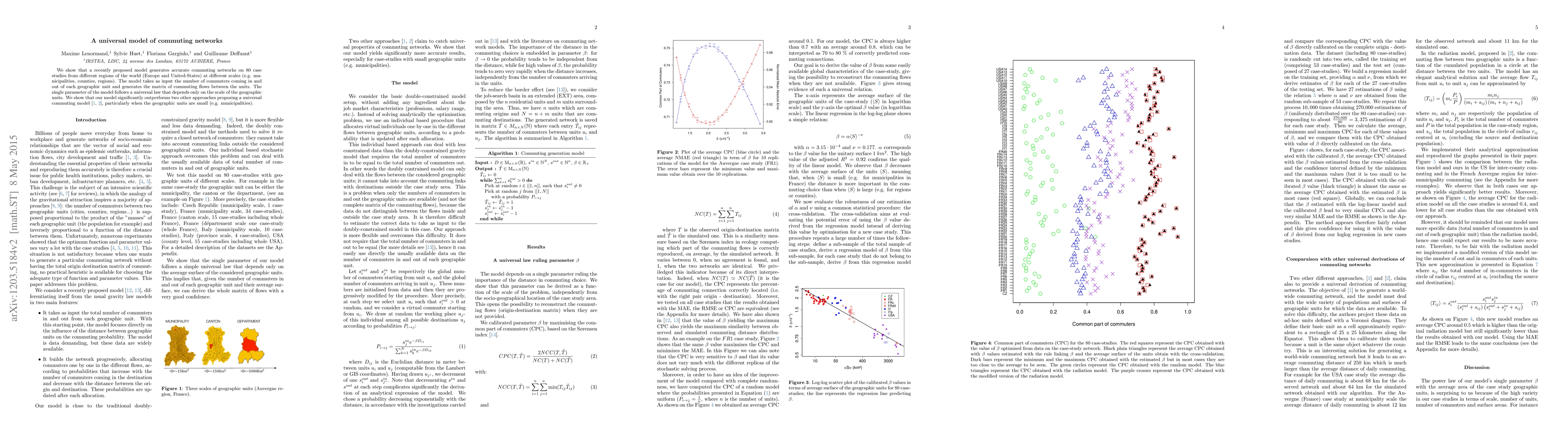 This paper tests a universal model of commuting networks across 80 diverse case studies, demonstrating that the model's single parameter follows a universal law based on geographic unit size. The model outperforms existing approaches, especially for smaller geographic units like municipalities.