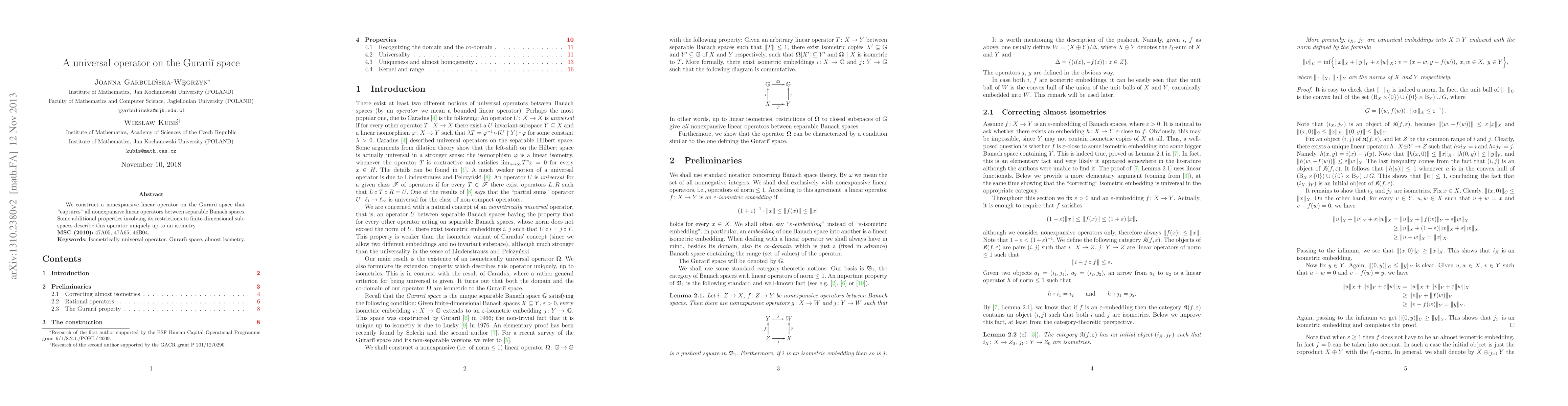 Summary: This paper constructs a nonexpansive linear operator on the Gurarii space that encapsulates all nonexpansive linear operators between separable Banach spaces, with unique properties in finite-dimensional subspaces ensuring its distinctiveness up to isometry.
