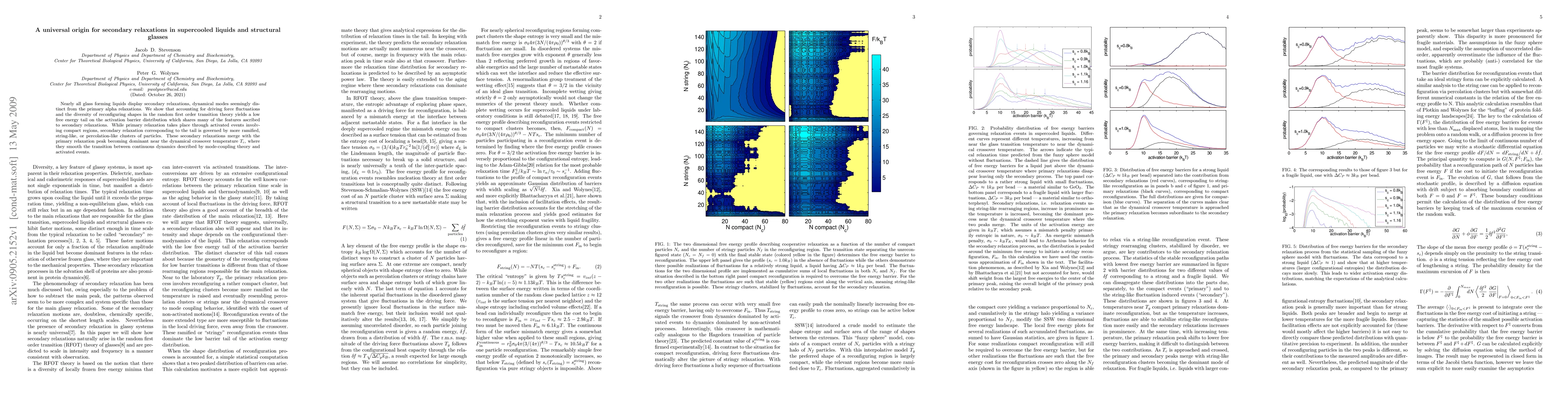 Nearly all glass forming liquids display secondary relaxations, dynamical modes seemingly distinct from the primary alpha relaxations. We show that accounting for driving force fluctuations and the diversity of reconfiguring shapes in the random first order transition theory yields a low free energy tail on the activation barrier distribution which shares many of the features ascribed to secondary relaxations. While primary relaxation takes place through activated events involving compact regions, secondary relaxation corresponding to the tail is governed by more ramified, string-like, or percolation-like clusters of particles. These secondary relaxations merge with the primary relaxation peak becoming dominant near the dynamical crossover temperature $T_c$, where they smooth the transition between continuous dynamics described by mode-coupling theory and activated events.