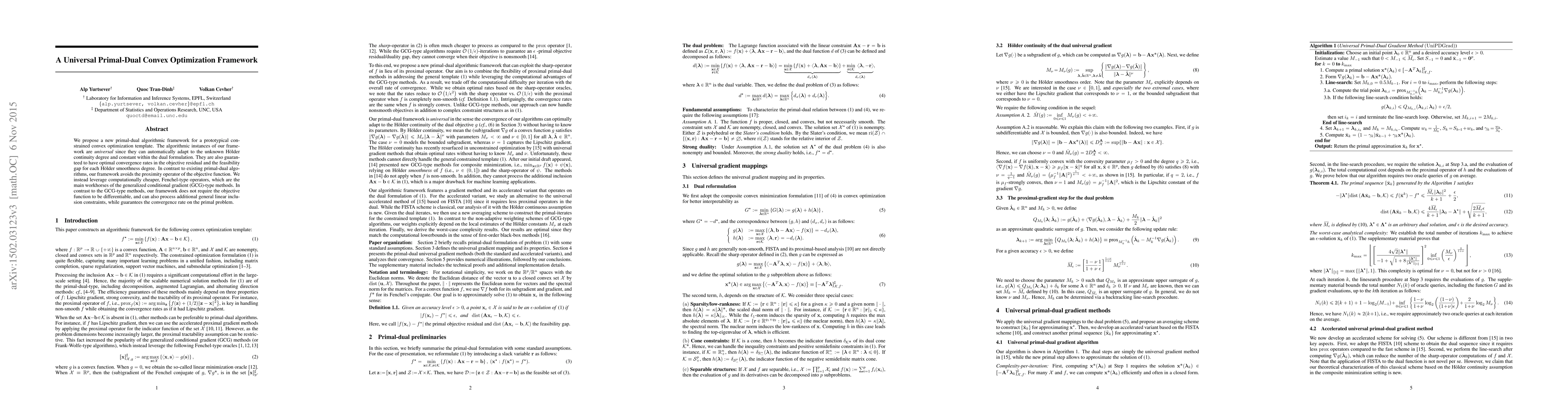 This paper introduces a universal primal-dual framework for convex optimization that adapts to unknown Holder continuity, achieving optimal convergence rates without requiring differentiability. It leverages computationally efficient Fenchel-type operators instead of proximity operators, and can handle general linear inclusion constraints.