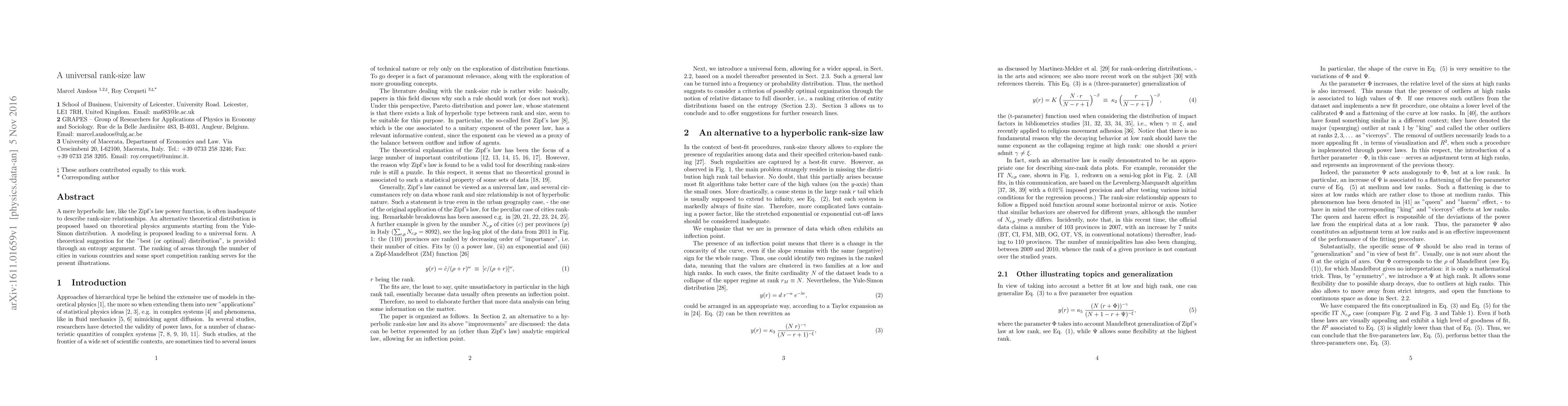 This paper proposes a universal rank-size law based on theoretical physics, offering an alternative to Zipf's law. It suggests an optimal distribution through an entropy argument, illustrated by ranking cities in various countries and sports competitions.
