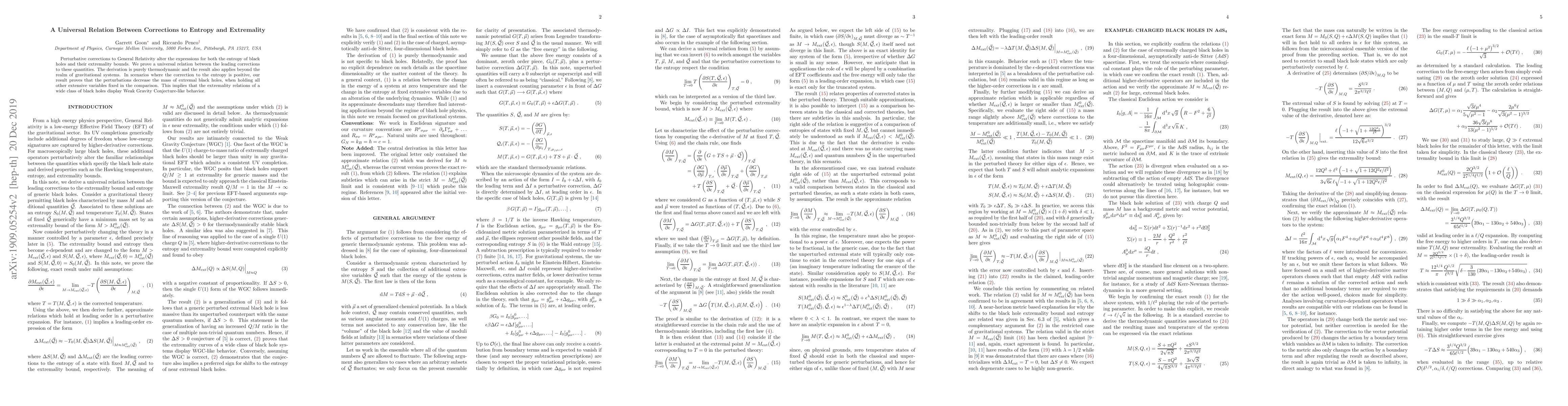 Perturbative corrections to General Relativity alter the expressions for both the entropy of black holes and their extremality bounds. We prove a universal relation between the leading corrections to these quantities. The derivation is purely thermodynamic and the result also applies beyond the realm of gravitational systems. In scenarios where the correction to the entropy is positive, our result proves that the perturbations decrease the mass of extremal black holes, when holding all other extensive variables fixed in the comparison. This implies that the extremality relations of a wide class of black holes display Weak Gravity Conjecture-like behavior.