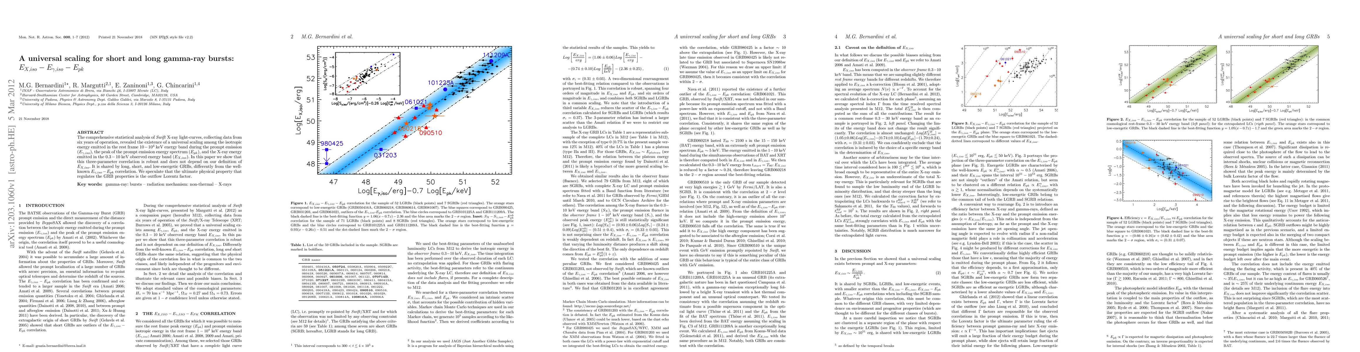 This paper establishes a universal scaling relationship among the isotropic energies emitted in different bands (gamma rays and X-rays) and the peak energy for both short and long gamma-ray bursts. The authors argue that this correlation is robust and suggests the outflow Lorentz factor may be the underlying physical regulator.