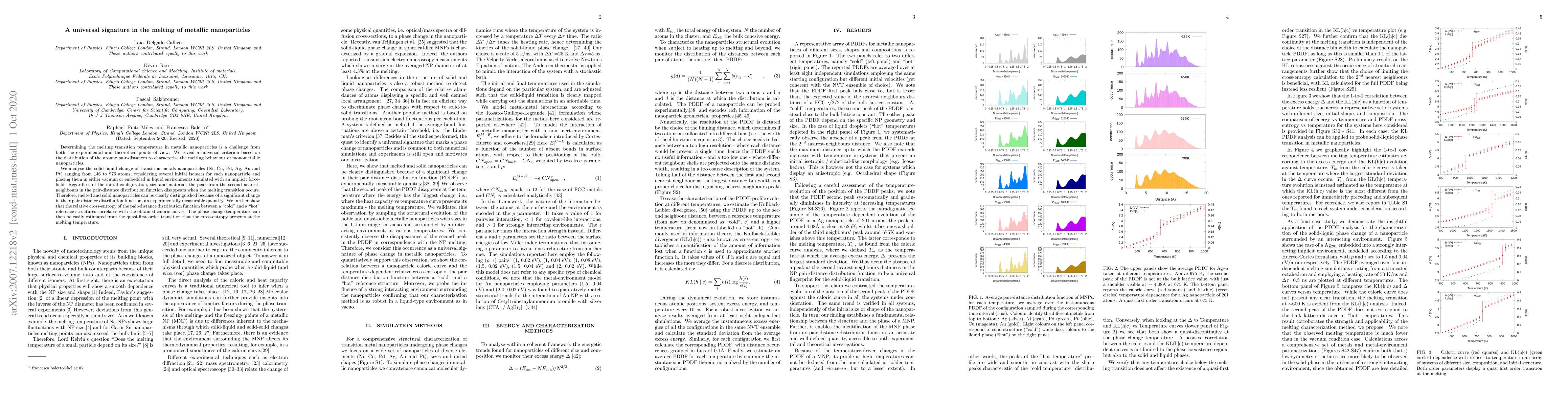 This paper identifies a universal signature in the melting of metallic nanoparticles, characterized by the disappearance of a peak at the second nearest neighbours in the pair distribution function, detectable via X-ray analysis. The study correlates this structural change with the melting temperature using relative cross-entropy, applicable across various nanoparticle sizes and shapes.