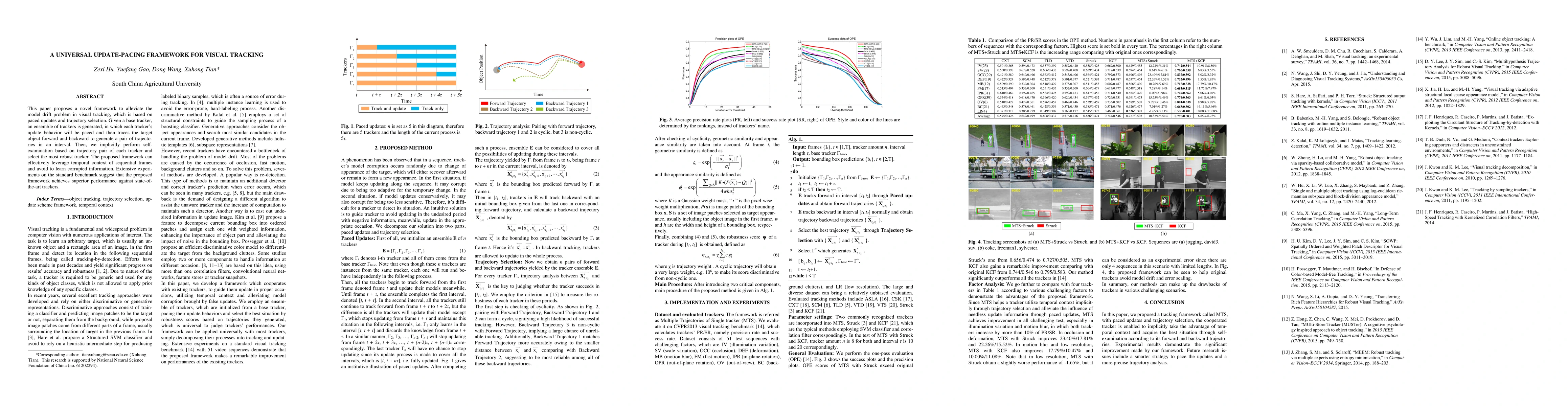 The paper introduces a framework that combats model drift in visual tracking using paced updates and trajectory selection. It generates an ensemble of trackers, paces each tracker's updates, and traces the target forward and backward to create trajectory pairs. By examining these pairs, the framework selects the most robust tracker, leveraging temporal context and avoiding corrupted information. Results show superior performance compared to existing trackers.