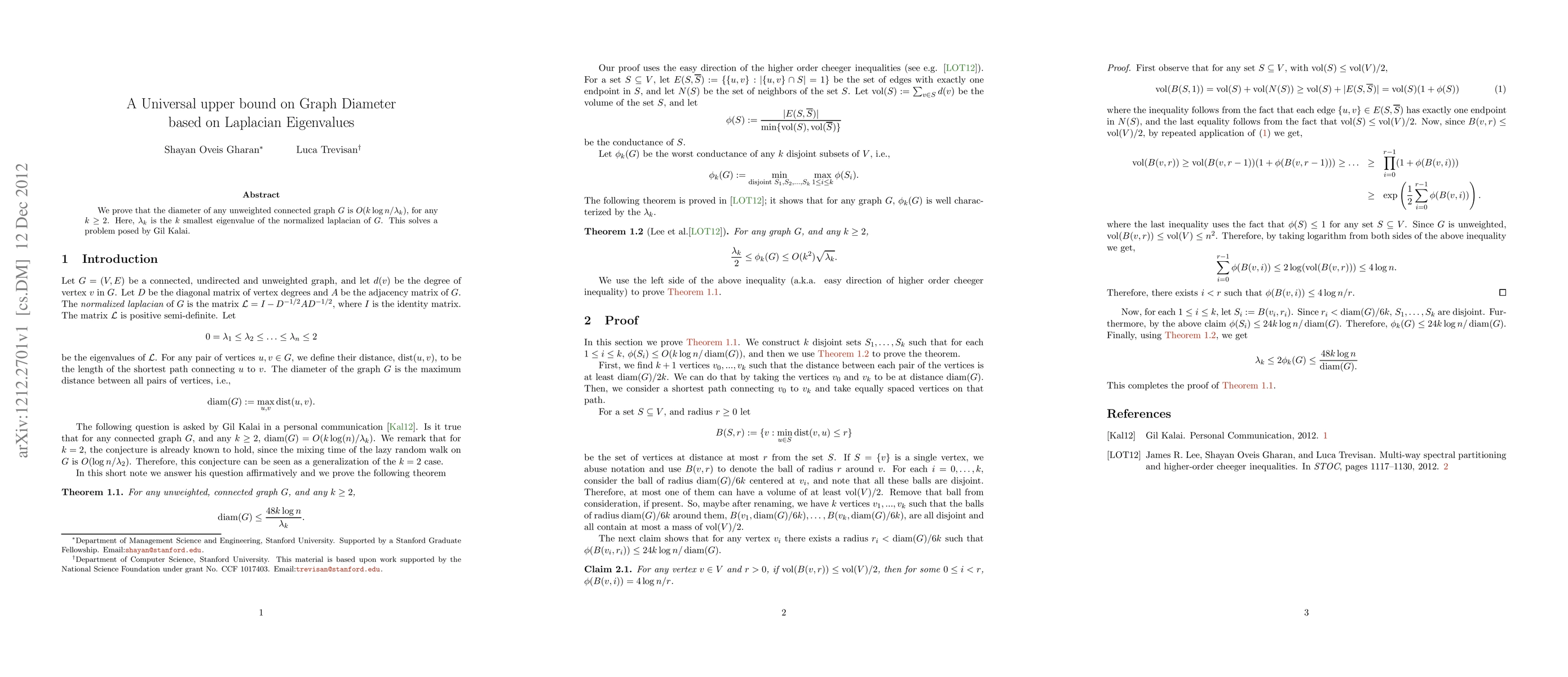 Researchers found a universal upper bound on graph diameter based on Laplacian eigenvalues, solving a problem posed by Gil Kalai, with a limit of O(k log n/lambda_k) for any k>= 2.