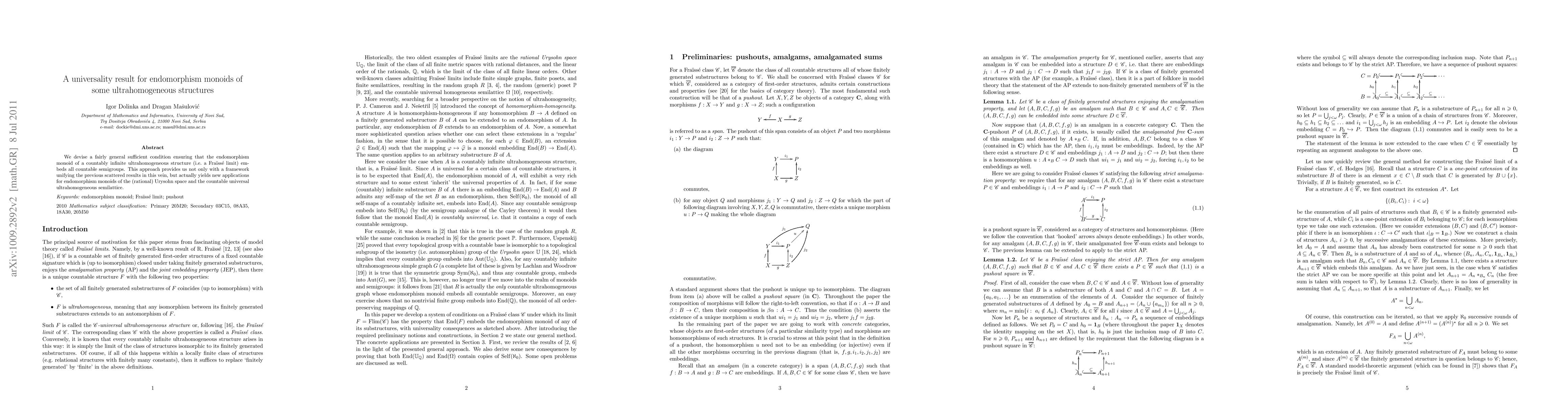 Summary: The paper establishes a general condition for embedding all countable semigroups into the endomorphism monoid of a countably infinite ultrahomogeneous structure, unifying previous results and extending applications to notable examples like the Urysohn space and the countable universal ultrahomogeneous semilattice.