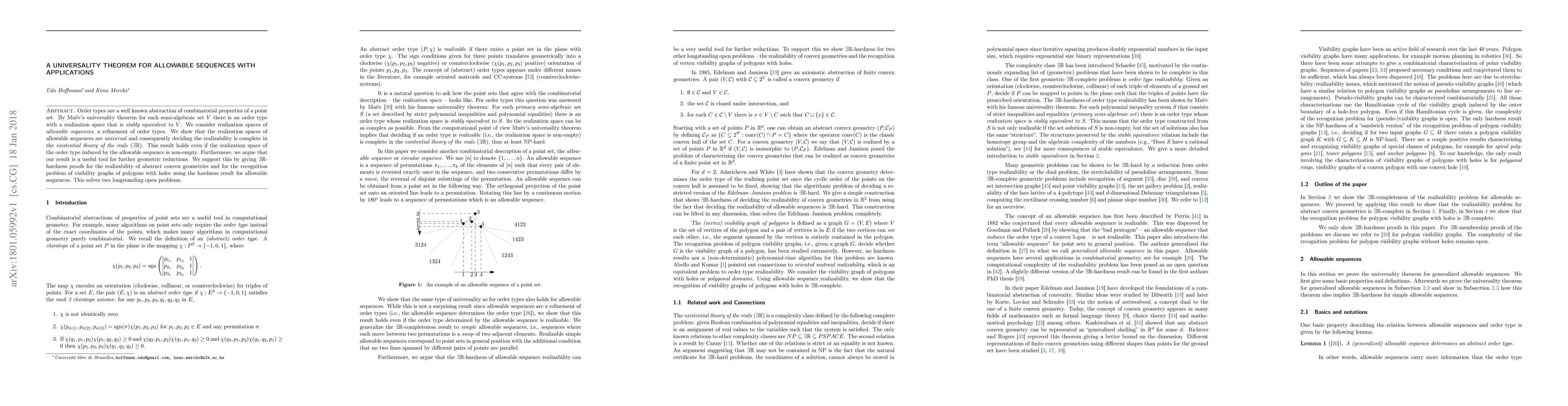 Researchers prove that realization spaces of allowable sequences have a universal property, enabling decision in existential theory of reals, with implications for solving two longstanding open problems related to abstract convex geometries and visibility graphs of polygons with holes.