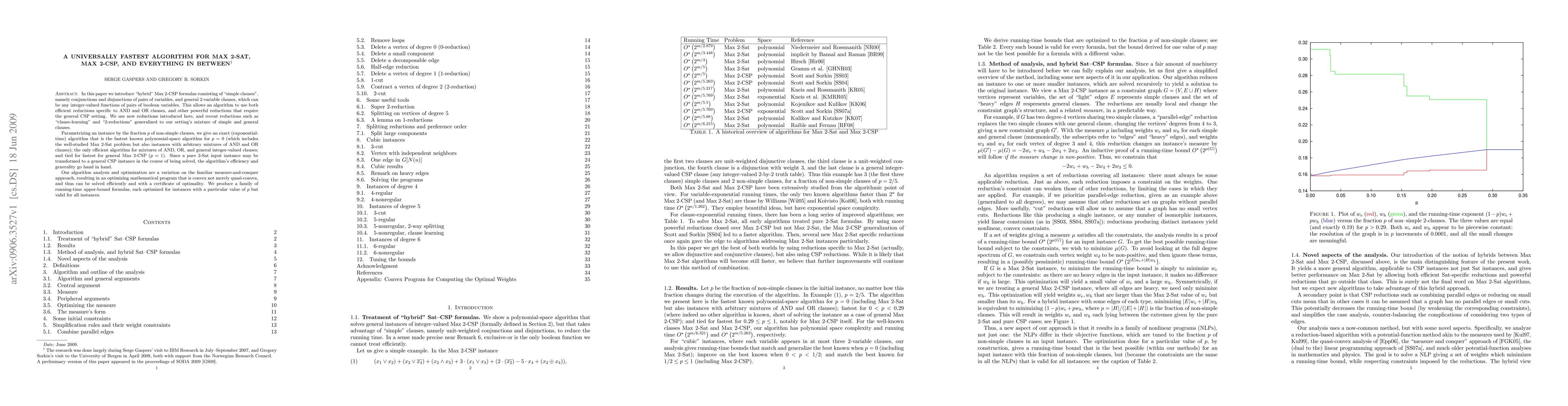 This paper presents a hybrid algorithm for solving Max 2-CSP problems, which includes both simple clauses (AND/OR) and general 2-variable clauses. The algorithm leverages specialized reductions for simple clauses and general CSP reductions, achieving the fastest known polynomial-space algorithm for various problem mixtures. The analysis employs a convex optimization approach to ensure efficient and optimal solutions.