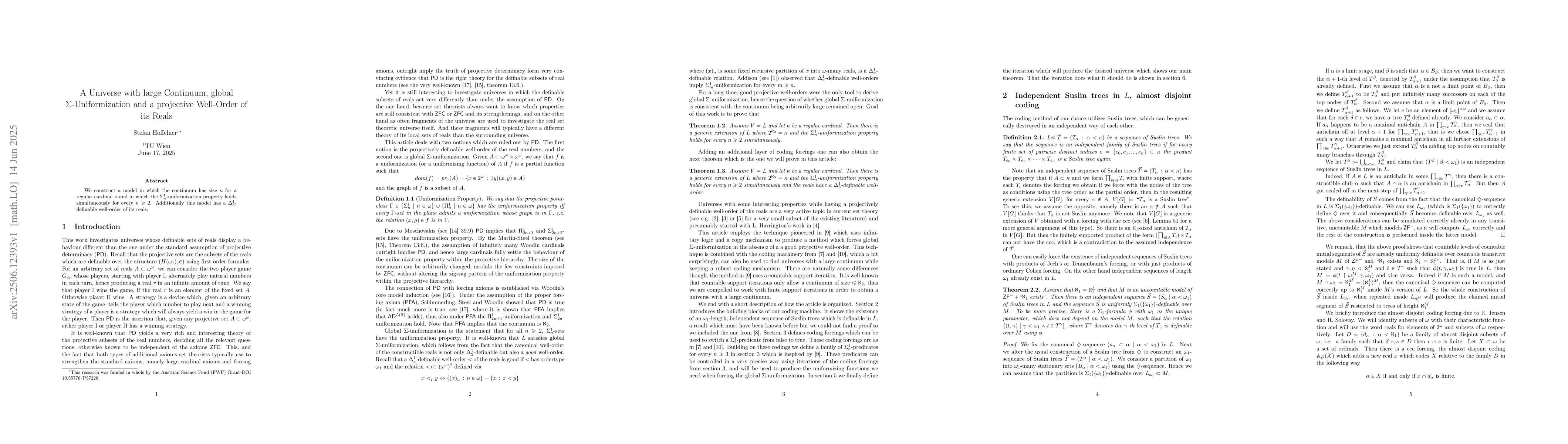 We construct a model in which the continuum has size $\kappa$ for a regular cardinal $\kappa$ and in which the $\Sigma^1_n$-uniformization property holds simultaneously for every $n \ge 2$. Additionally this model has a $\Delta^1_3$- definable well-order of its reals.