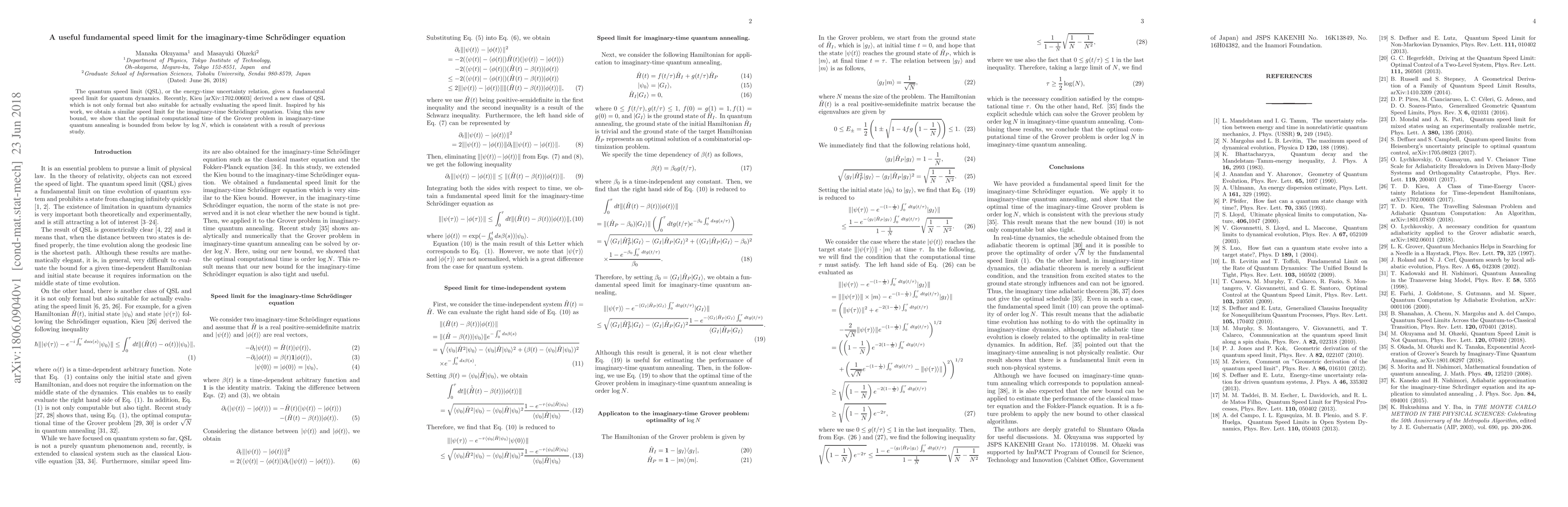 Researchers derive a fundamental speed limit for imaginary-time Schrödinger equations, bounding computational time for quantum annealing problems like the Grover problem at $oxed{rac{1}{ heta}}$.