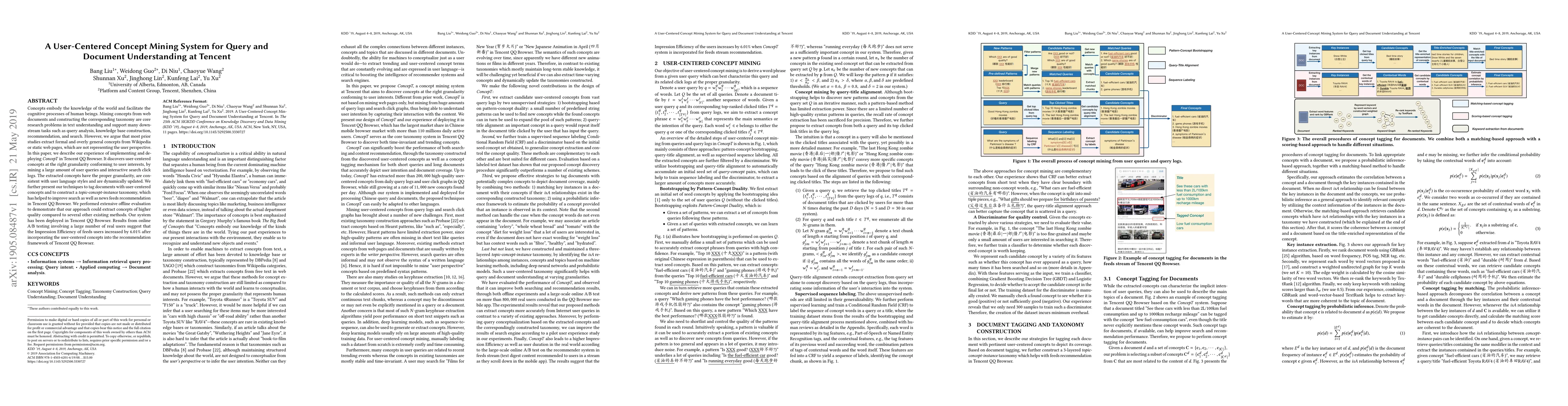 A new system called ConcepT uses user queries and search logs to discover user-centered concepts that improve search results and recommendations in Tencent QQ Browser, increasing impression efficiency by 6.01%.