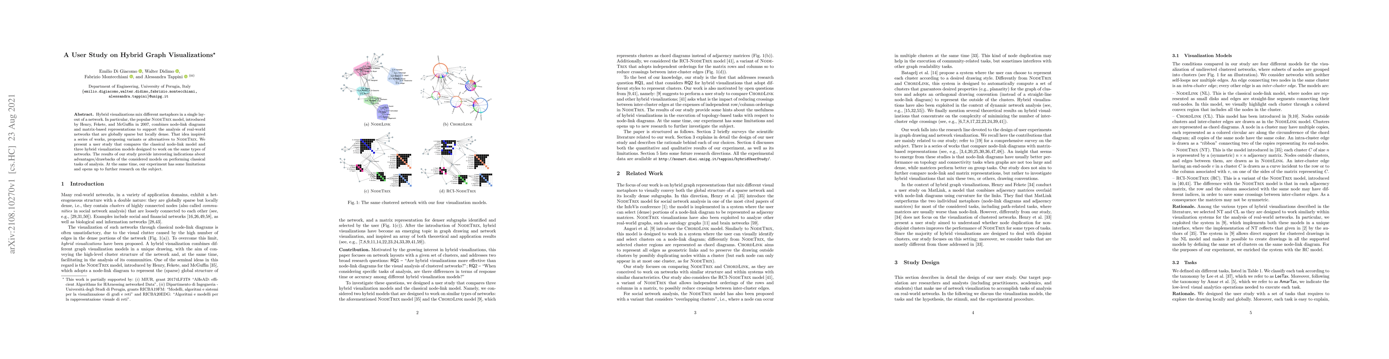 Hybrid visualizations mix different metaphors in a single layout of a network. In particular, the popular NodeTrix model, introduced by Henry, Fekete, and McGuffin in 2007, combines node-link diagrams and matrix-based representations to support the analysis of real-world networks that are globally sparse but locally dense. That idea inspired a series of works, proposing variants or alternatives to NodeTrix. We present a user study that compares the classical node-link model and three hybrid visualization models designed to work on the same types of networks. The results of our study provide interesting indications about advantages/drawbacks of the considered models on performing classical tasks of analysis. At the same time, our experiment has some limitations and opens up to further research on the subject.