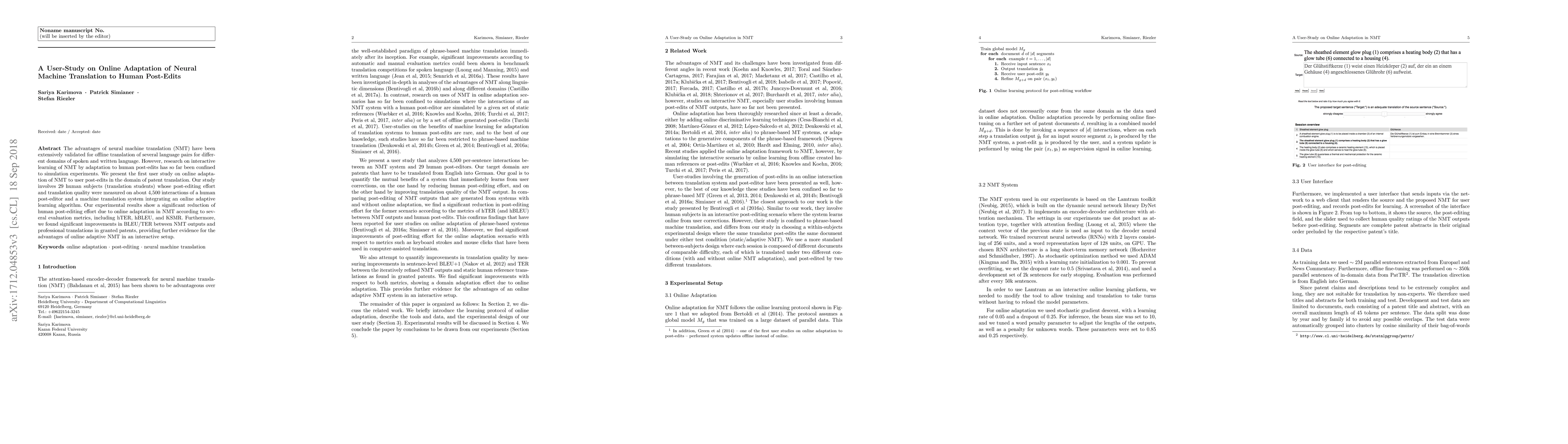 This study investigates the online adaptation of neural machine translation (NMT) using human post-edits in patent translation, finding a significant reduction in post-editing effort and improvements in translation quality based on metrics like hTER, hBLEU, and KSMR. The study involved 29 translation students and 4,500 interactions, demonstrating the benefits of interactive learning for NMT.