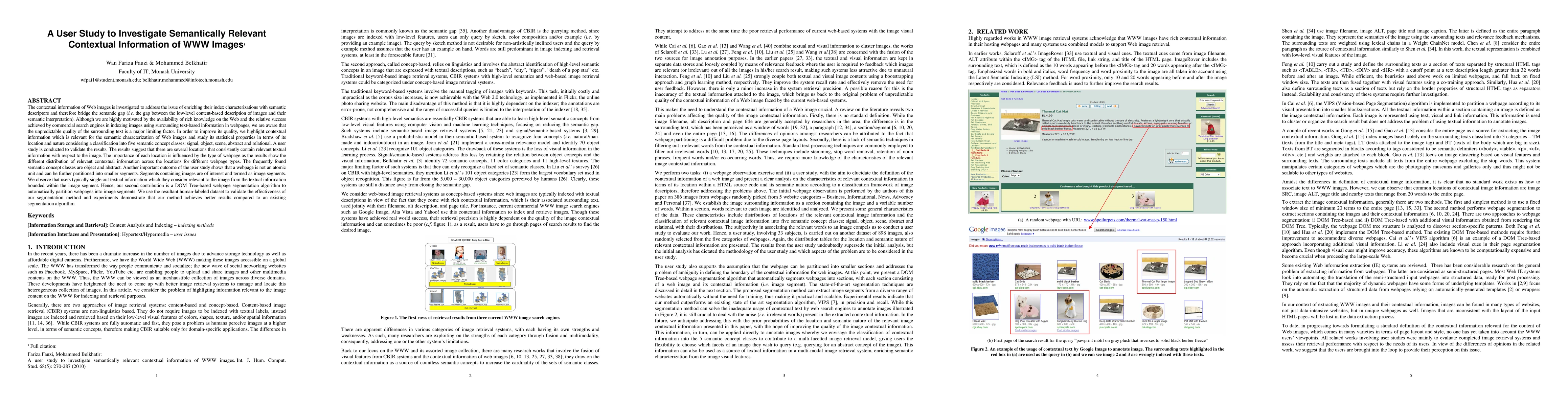 This research investigates the semantic context of web images, focusing on five classes: signal, object, scene, abstract, and relational. A user study reveals that certain image segment locations consistently provide relevant textual information, with object and abstract concepts being frequently found. The study also indicates that webpages can be divided into smaller segments, each potentially offering useful contextual data for image semantic characterization.