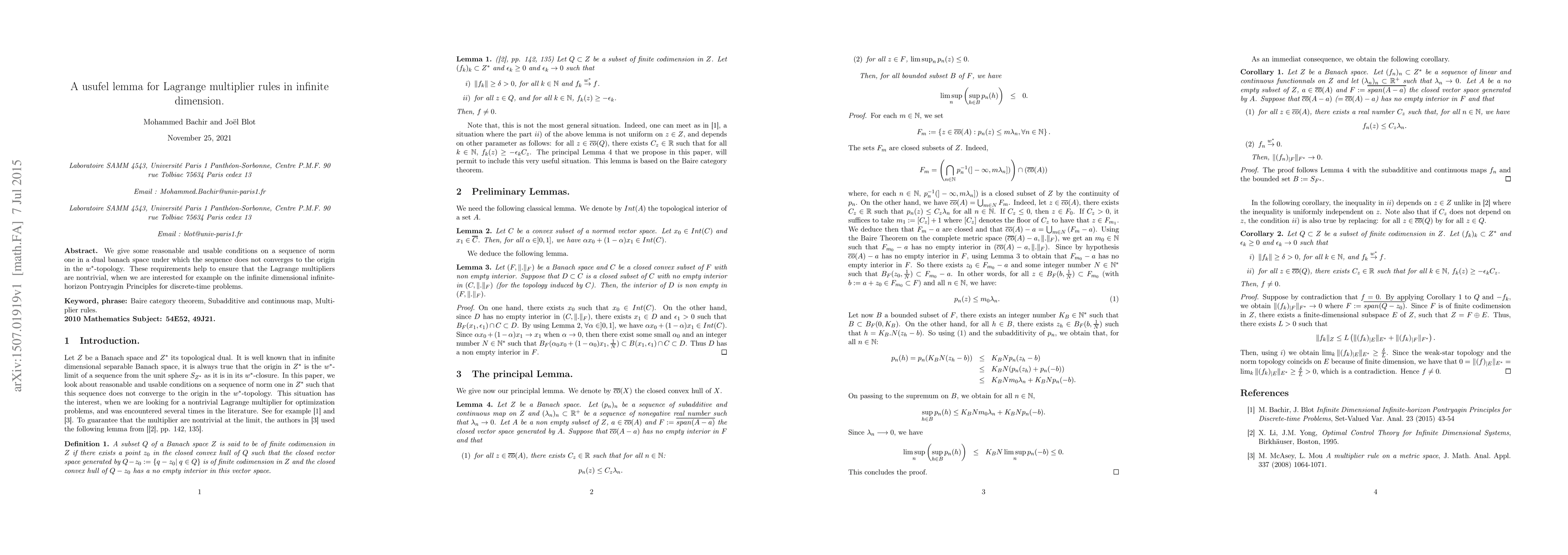 Researchers establish conditions under which Lagrange multiplier rules remain nontrivial in infinite dimensions, improving applicability to the Pontryagin Principle for discrete-time problems.