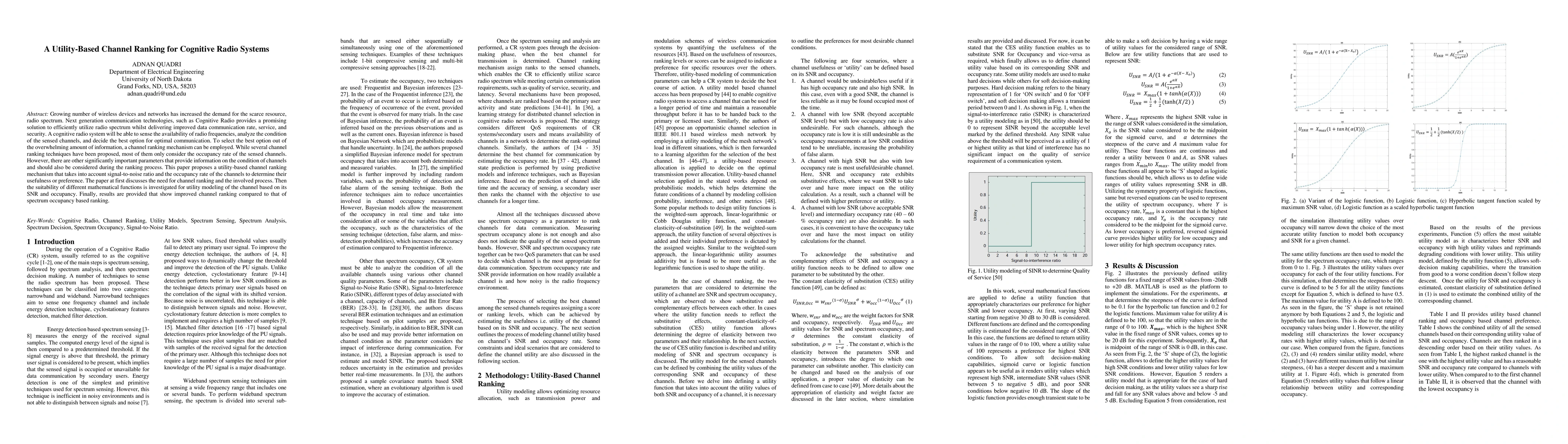 A new channel ranking mechanism is proposed for Cognitive Radio Systems, which considers both signal-to-noise ratio and occupancy rate to determine channel usefulness, improving ranking accuracy over traditional occupancy-based methods.