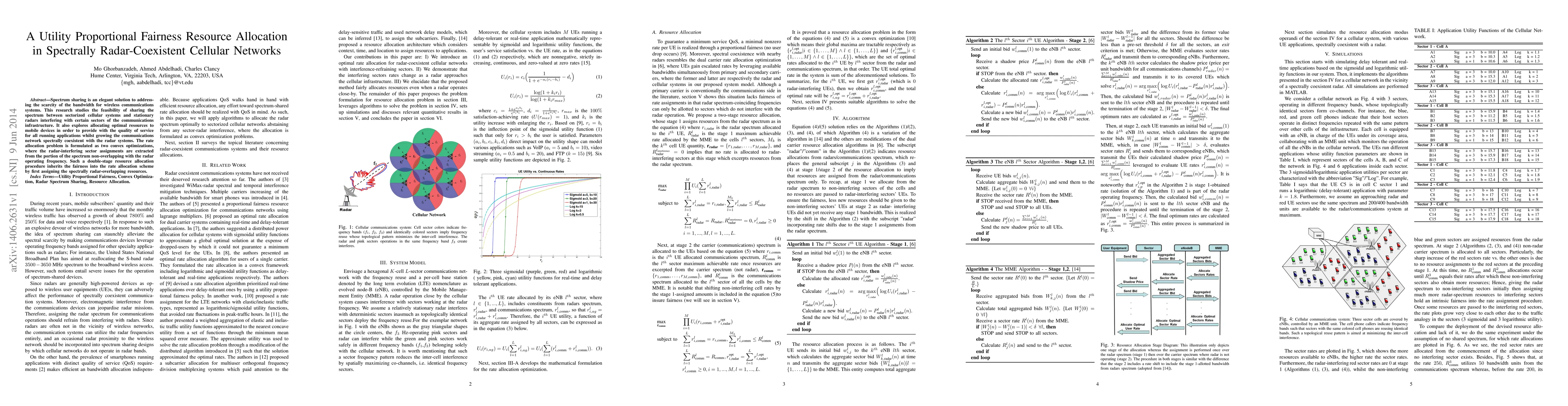 This paper investigates spectrum sharing between cellular networks and radar systems, proposing a utility proportional fairness resource allocation method. It formulates the rate allocation as two convex optimizations, ensuring optimal resource distribution for mobile devices while maintaining quality of service amidst radar interference.