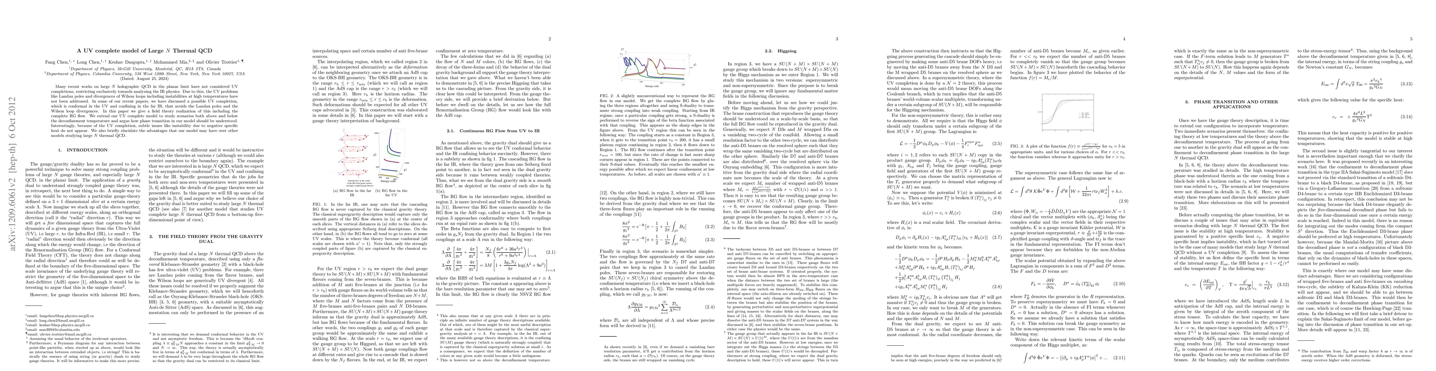 Many recent works on large N holographic QCD in the planar limit have not considered UV completions, restricting exclusively towards analyzing the IR physics. Due to this, the UV problems like Landau poles and divergences of Wilson loops including instabilities at high temperatures have not been addressed. In some of our recent papers, we have discussed a possible UV completion, which is conformal in the UV and confining in the far IR, that avoids the Landau poles and the Wilson loop divergences. In this paper we give a field theory realization of this including the complete RG flow. We extend our UV complete model to study scenarios both above and below the deconfinement temperature and argue how phase transition in our model should be understood. Interestingly, because of the UV completion, subtle issues like instability due to negative specific heat do not appear. We also briefly elucidate the advantages that our model may have over other models studying large N thermal QCD.