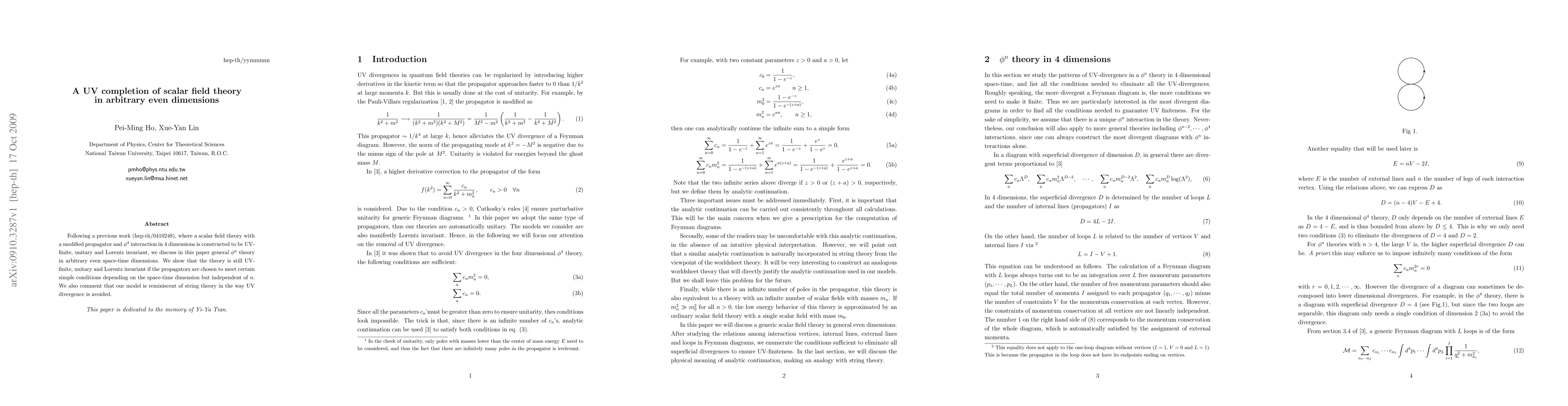 Following a previous work (hep-th/0410248), where a scalar field theory with a modified propagator and phi^4 interaction in 4 dimensions is constructed to be UV-finite, unitary and Lorentz invariant, we discuss in this paper general phi^n theory in arbitrary even space-time dimensions. We show that the theory is still UV-finite, unitary and Lorentz invariant if the propagators are chosen to meet certain simple conditions depending on the space-time dimension but independent of n. We also comment that our model is reminiscent of string theory in the way UV divergence is avoided.
