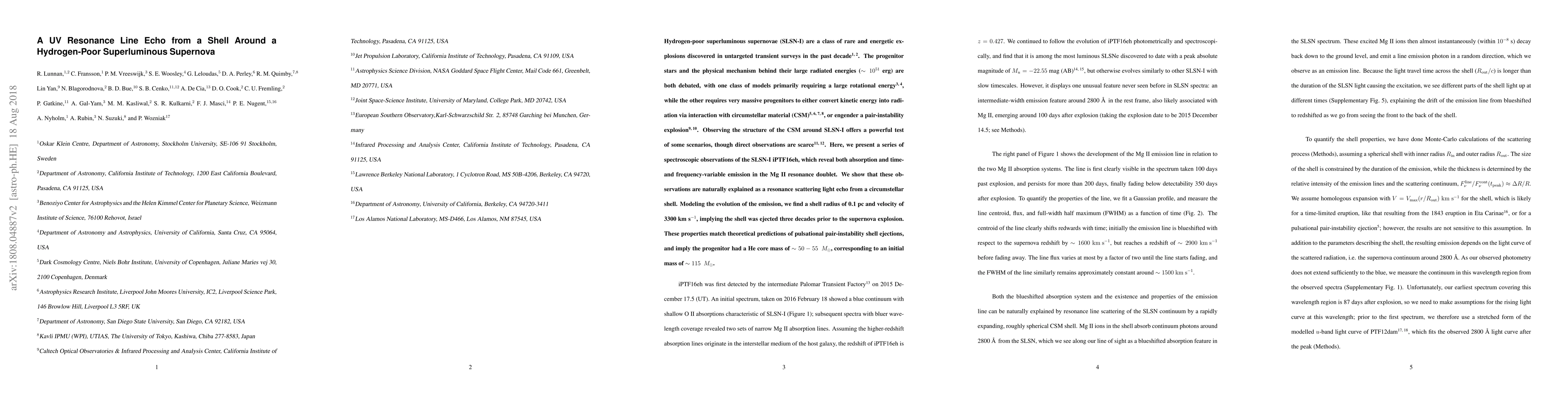 Hydrogen-poor superluminous supernovae (SLSN-I) are a class of rare and energetic explosions discovered in untargeted transient surveys in the past decade. The progenitor stars and the physical mechanism behind their large radiated energies ($\sim10^{51}$ erg) are both debated, with one class of models primarily requiring a large rotational energy, while the other requires very massive progenitors to either convert kinetic energy into radiation via interaction with circumstellar material (CSM), or engender a pair-instability explosion. Observing the structure of the CSM around SLSN-I offers a powerful test of some scenarios, though direct observations are scarce. Here, we present a series of spectroscopic observations of the SLSN-I iPTF16eh, which reveal both absorption and time- and frequency-variable emission in the Mg II resonance doublet. We show that these observations are naturally explained as a resonance scattering light echo from a circumstellar shell. Modeling the evolution of the emission, we find a shell radius of 0.1 pc and velocity of 3300 km s$^{-1}$, implying the shell was ejected three decades prior to the supernova explosion. These properties match theoretical predictions of pulsational pair-instability shell ejections, and imply the progenitor had a He core mass of $\sim 50-55~{\rm M}_{\odot}$, corresponding to an initial mass of $\sim 115~{\rm M}_{\odot}$.