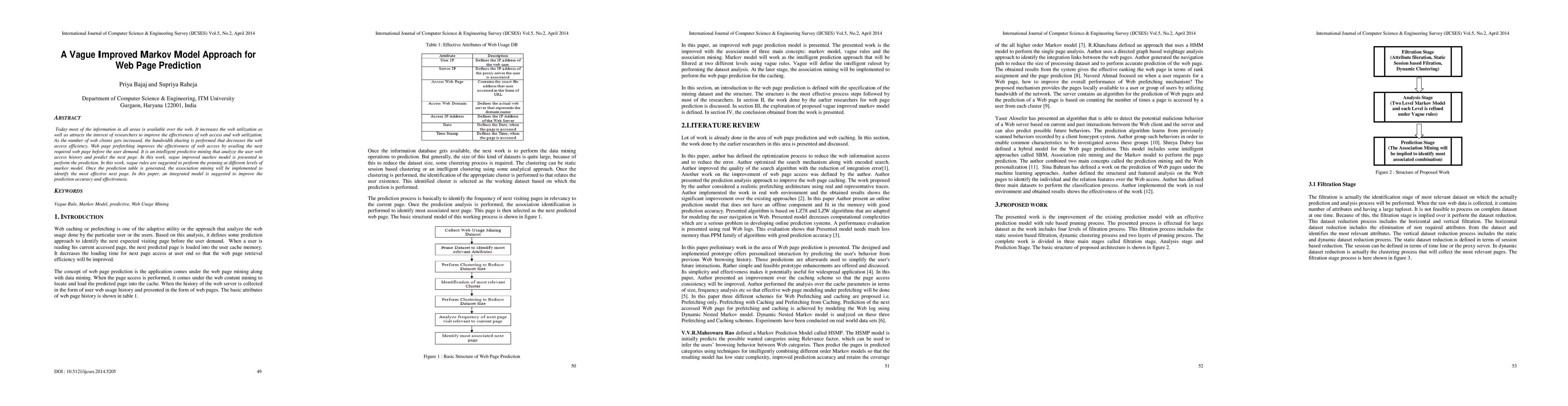 This paper proposes a vague improved Markov model to predict web page access, enhancing web access efficiency through prefetching. It introduces vague rules for pruning the Markov model and uses association mining to identify the most effective next web page.