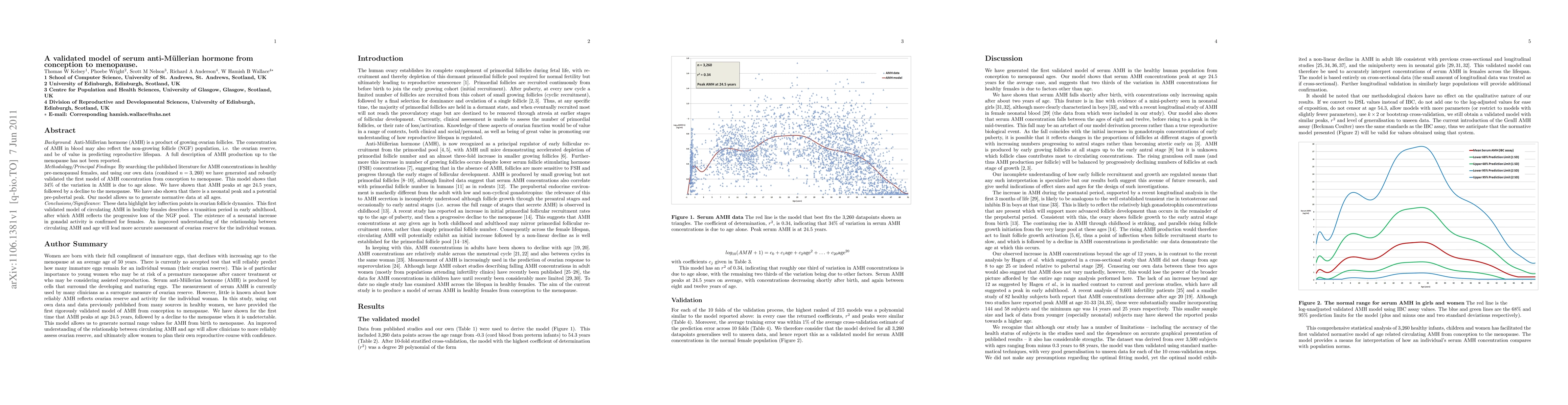 This study presents the first validated model of serum anti-Mullerian hormone (AMH) concentrations from conception to menopause, revealing key inflection points in ovarian follicle dynamics and confirming a neonatal peak in gonadal activity. The model highlights the progressive decline of AMH after a peak at age 24.5 years, aiding in the accurate assessment of ovarian reserve.