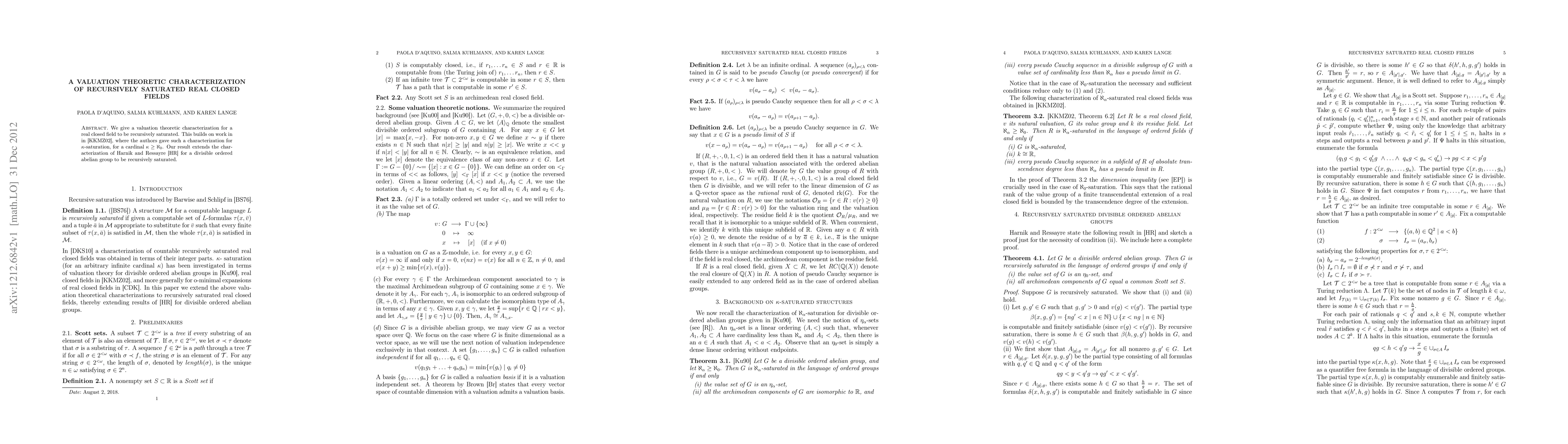 Summary: This paper provides a valuation theoretic framework to characterize recursively saturated real closed fields, extending the prior work of Harnik and Ressayre on divisible ordered abelian groups. The new characterization extends the understanding of recursive saturation in the context of real closed fields.