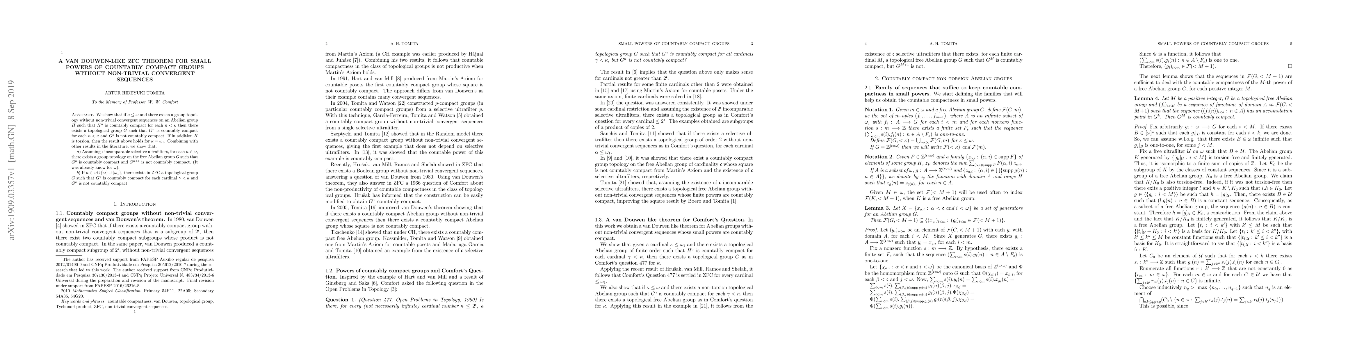 This paper demonstrates that under certain conditions, if an Abelian group $H$ has a group topology without non-trivial convergent sequences and its small powers are countably compact, then a larger topological group $G$ can be constructed where $G^n$ remains countably compact for small $n$ but $G^\kappa$ is not. This result extends to larger cardinals under additional assumptions.
