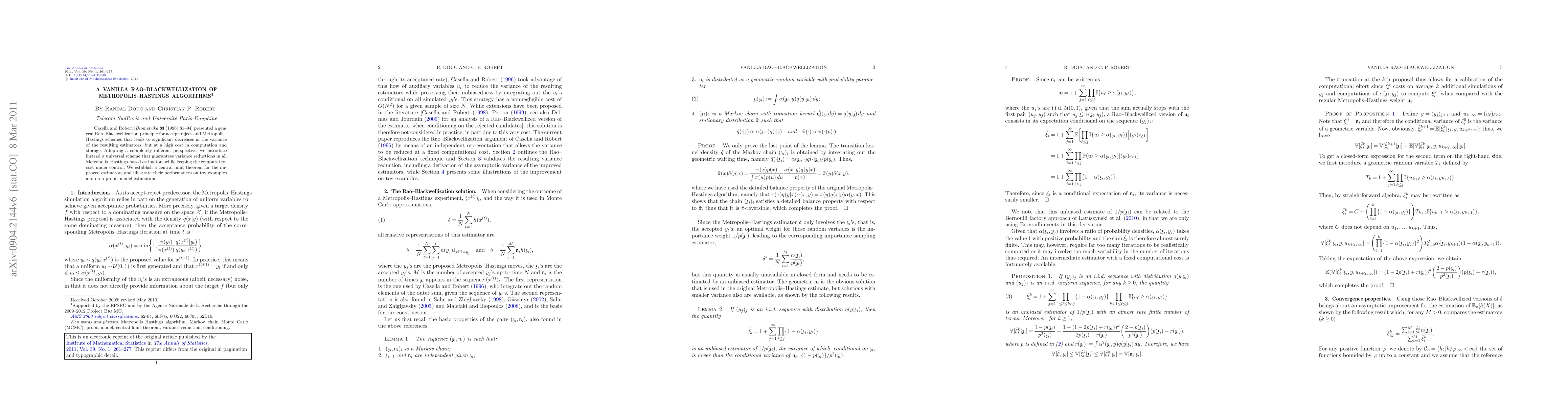 This paper proposes a simplified Rao-Blackwellized version of Metropolis-Hastings algorithms that achieves variance reduction without significant computational overhead, and validates its effectiveness through both theoretical central limit theorem and practical applications on a probit model.
