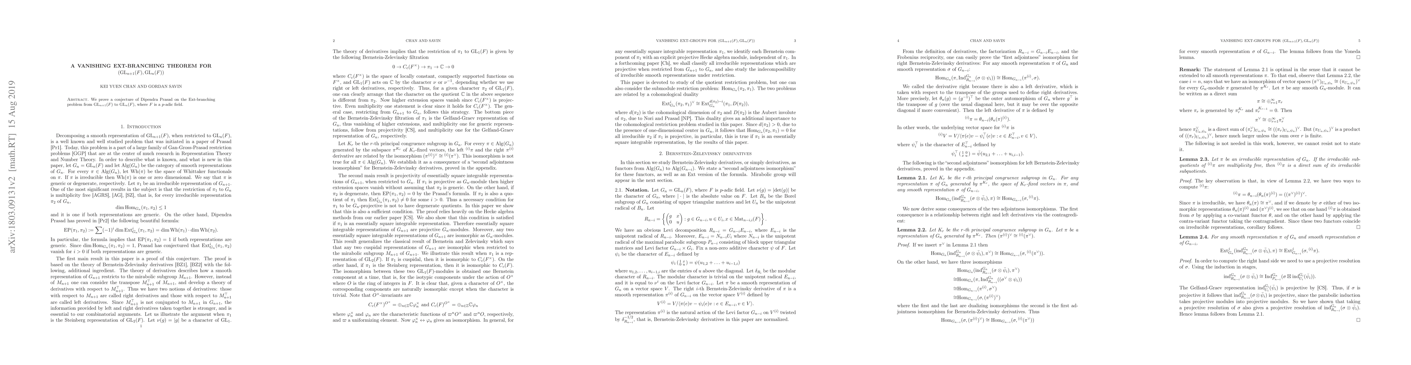 We prove a conjecture of Dipendra Prasad on the Ext-branching problem from $\mathrm{GL}_{n+1}(F)$ to $\mathrm{GL}_n(F)$, where $F$ is a $p$-adic field.