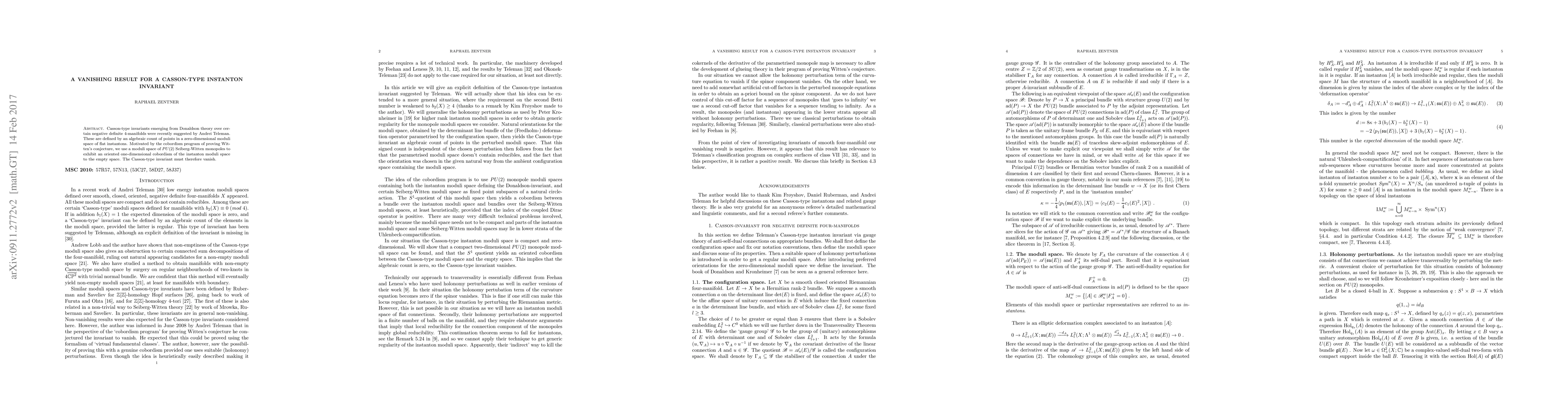 The paper establishes a vanishing result for a Casson-type invariant defined via flat instantons on negative definite 4-manifolds, employing a cobordism argument based on PU(2) Seiberg-Witten monopoles to show the invariant must be zero. This supports the cobordism program for proving Witten's conjecture.