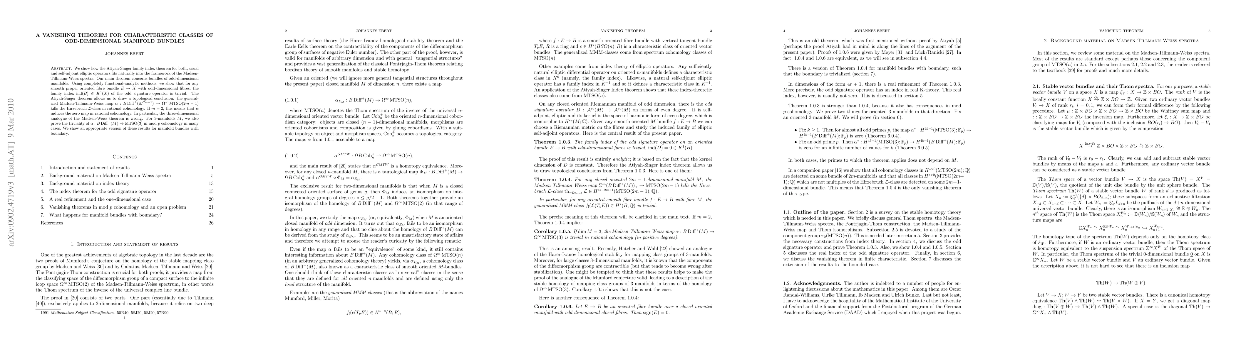 Researchers show that for odd-dimensional manifold bundles, a theorem related to characteristic classes is trivial, contradicting the three-dimensional analogue of the Madsen-Weiss theorem.
