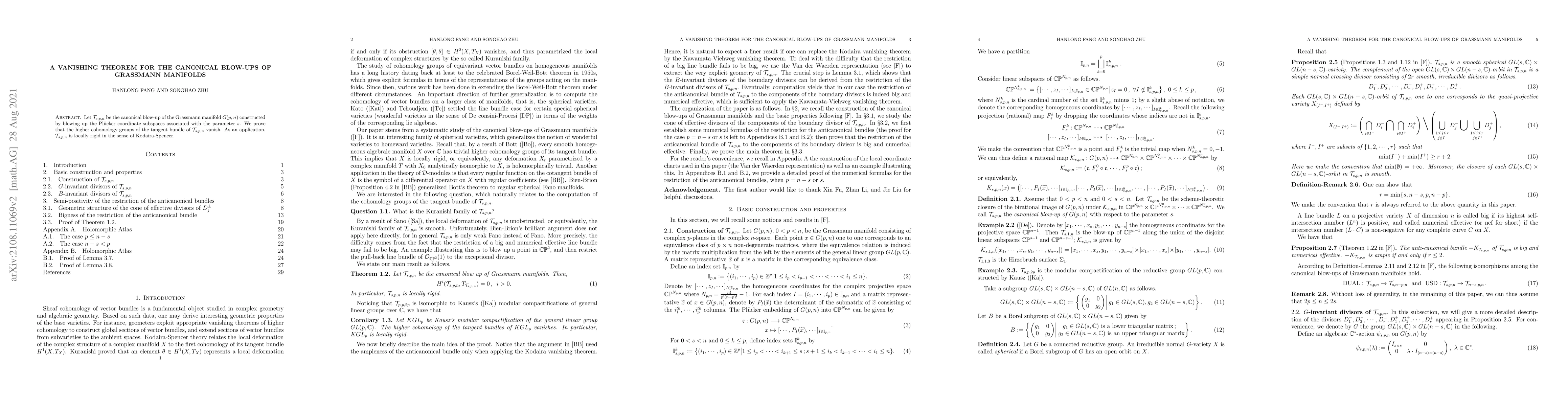 Summary: This paper proves that the higher cohomology groups of the tangent bundle for the canonical blow-ups of Grassmann manifolds vanish, establishing local rigidity in the Kodaira-Spencer sense. The result is derived from the construction of these blow-ups by blowing up Plücker coordinate subspaces.