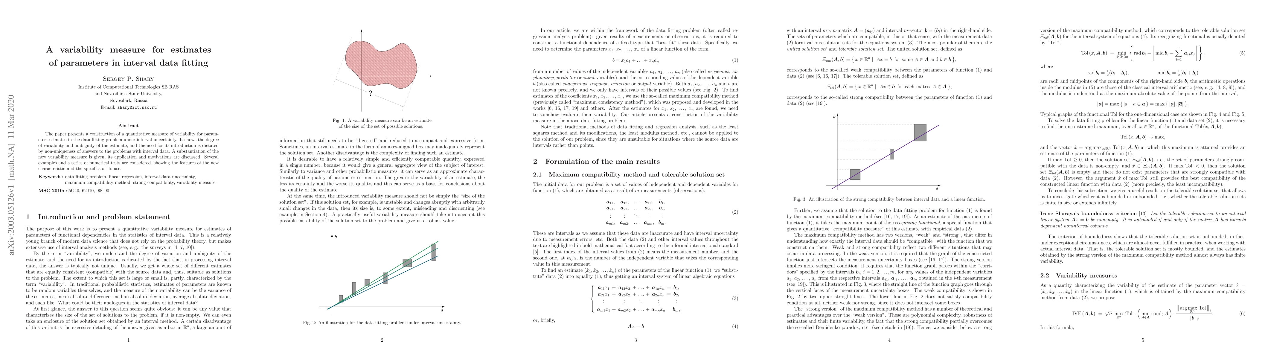 The paper presents a construction of a quantitative measure of variability for parameter estimates in the data fitting problem under interval uncertainty. It shows the degree of variability and ambiguity of the estimate, and the need for its introduction is dictated by non-uniqueness of answers to the problems with interval data. A substantiation of the new variability measure is given, its application and motivations are discussed. Several examples and a series of numerical tests are considered, showing the features of the new characteristic and the specifics of its use.