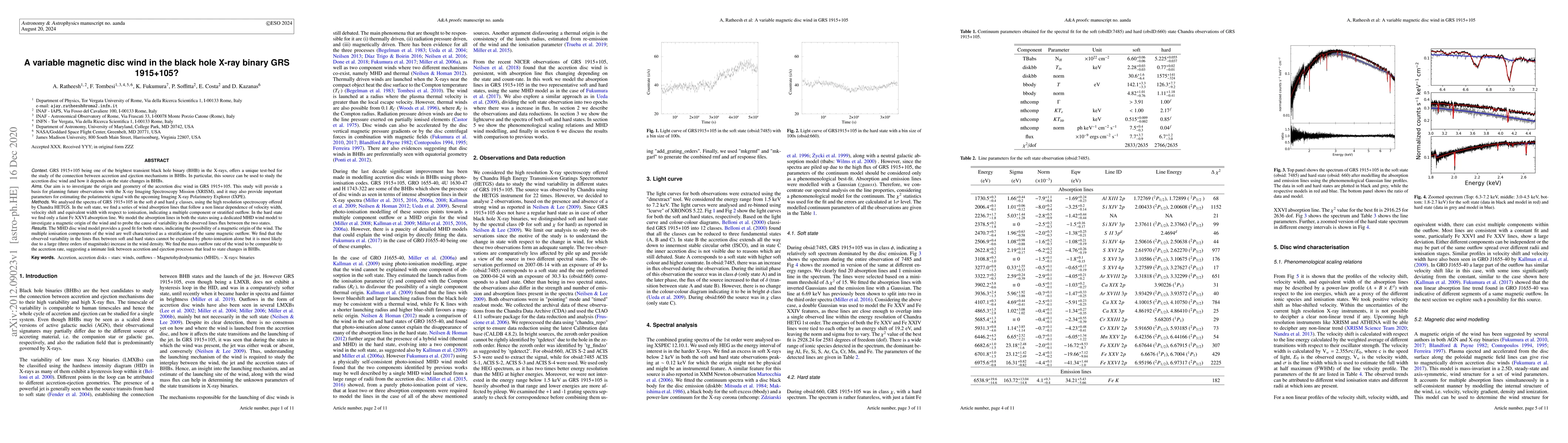 GRS 1915+105 being one of the brightest transient black hole binary (BHB) in the X-rays, offers a unique test-bed for the study of the connection between accretion and ejection mechanisms in BHBs. In particular, this source can be used to study the accretion disc wind and how it depends on the state changes in BHBs. Our aim is to investigate the origin and geometry of the accretion disc wind in GRS 1915+105. We analysed the spectra of GRS 1915+105 in the soft $\phi$ and hard $\chi$ classes, using the high resolution spectroscopy offered by Chandra HETGS. In the soft state, we find a series of wind absorption lines that follow a non linear dependence of velocity width, velocity shift and equivalent width with respect to ionisation, indicating a multiple component or stratified outflow. In the hard state we find only a faint Fe XXVI absorption line. We model the absorption lines in both the states using a dedicated MHD wind model to investigate a magnetic origin of the wind and to probe the cause of variability in the observed lines flux between the two states. The MHD disc wind model provides a good fit for both states, indicating the possibility of a magnetic origin of the wind. The multiple ionisation components of the wind are well characterised as a stratification of the same magnetic outflow. We find that the observed variability in the lines flux between soft and hard states cannot be explained by photo-ionisation alone but it is most likely due to a large (three orders of magnitude) increase in the wind density. We find the mass outflow rate of the wind to be comparable to the accretion rate, suggesting a intimate link between accretion and ejection processes that lead to state changes in BHBs.