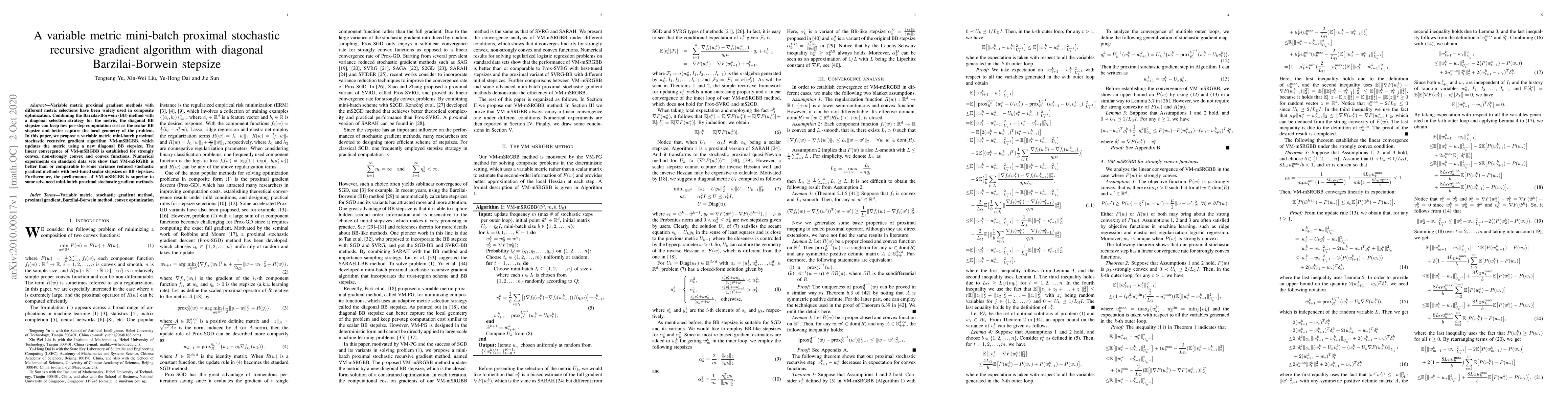 This paper proposes a variable metric mini-batch proximal stochastic recursive gradient algorithm VM-mSRGBB that uses a diagonal Barzilai-Borwein stepsize to update the metric, demonstrating linear convergence for various function types and outperforming other methods in numerical experiments.