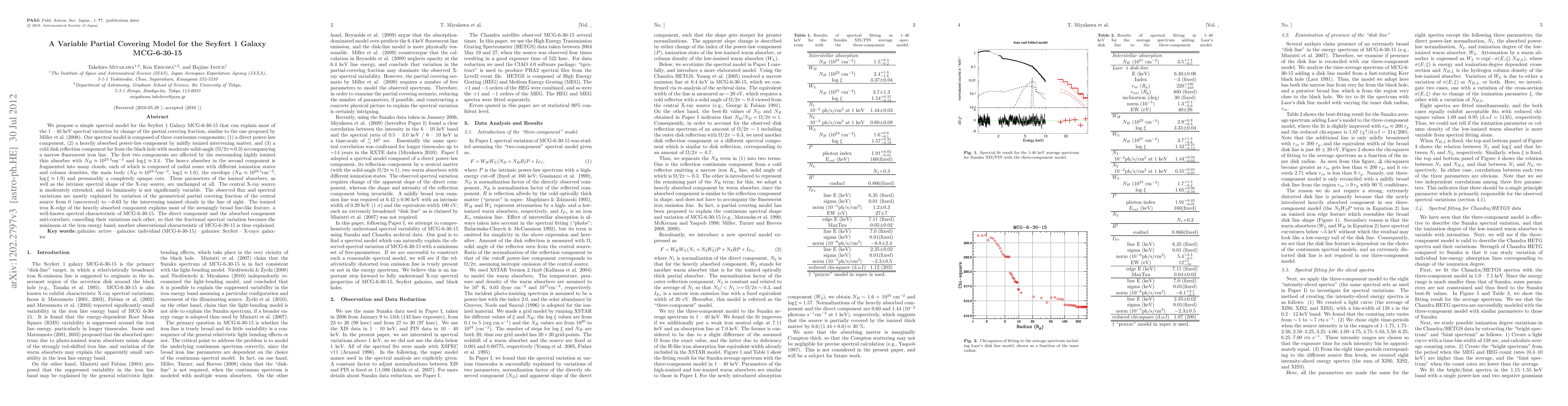 We propose a simple spectral model for the Seyfert 1 Galaxy MCG-6-30-15 that can explain most of the 1 - 40 keV spectral variation by change of the partial covering fraction, similar to the one proposed by Miller et al. (2008). Our spectral model is composed of three continuum components; (1) a direct power-law component, (2) a heavily absorbed power-law component by mildly ionized intervening matter, and (3) a cold disk reflection component far from the black hole with moderate solid-angle ({\Omega}/2{\pi} \approx 0.3) accompanying a narrow fluorescent iron line. The first two components are affected by the surrounding highly ionized thin absorber with N_H \approx 10^{23.4}cm-2 and log {\xi} \approx 3.4. The heavy absorber in the second component is fragmented into many clouds, each of which is composed of radial zones with different ionization states and column densities, the main body (N_H \approx 10^24.2cm-2, log {\xi} \approx 1.6), the envelope (N_H \approx 10^22.1cm-2, log {\xi} \approx 1.9) and presumably a completely opaque core. These parameters of the ionized absorbers, as well as the intrinsic spectral shape of the X-ray source, are unchanged at all. The central X-ray source is moderately extended, and its luminosity is not significantly variable. The observed flux and spectral variations are mostly explained by variation of the geometrical partial covering fraction of the central source from 0 (uncovered) to \sim0.63 by the intervening ionized clouds in the line of sight. The ionized iron K-edge of the heavily absorbed component explains most of the seemingly broad line-like feature, a well-known spectral characteristic of MCG-6-30-15. The direct component and the absorbed component anti-correlate, cancelling their variations each other, so that the fractional spectral variation becomes the minimum at the iron energy band; another observational characteristic of MCG-6-30-15 is thus explained.