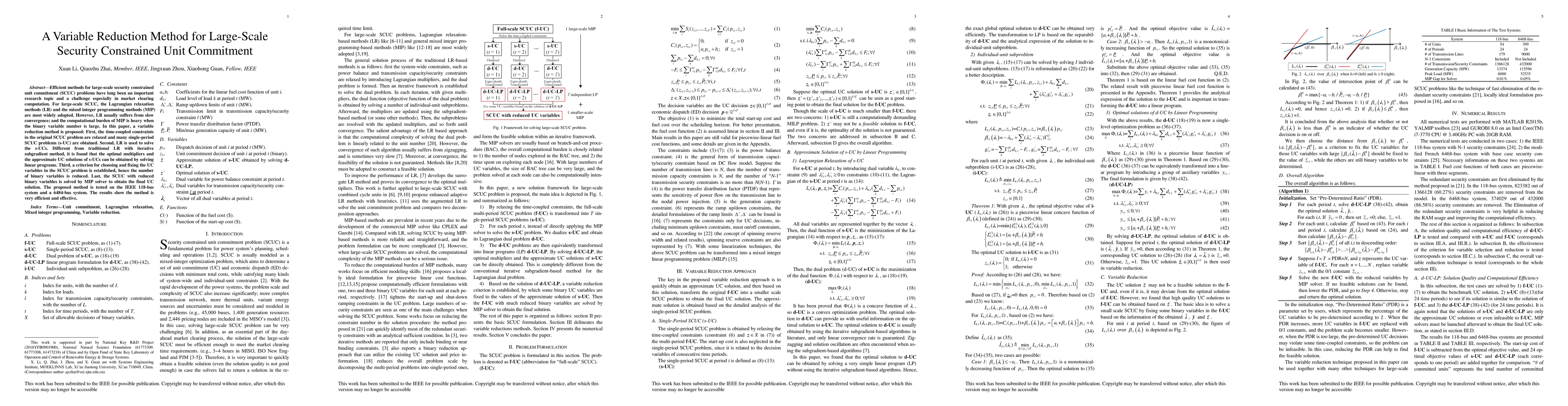 This paper proposes a variable reduction method to efficiently solve large-scale security constrained unit commitment (SCUC) problems by relaxing time-coupled constraints, using linear programming for optimal multipliers, and reducing binary variables before solving with a mixed integer programming solver. The method is tested on IEEE 118-bus and 6484-bus systems, demonstrating its efficiency and effectiveness.